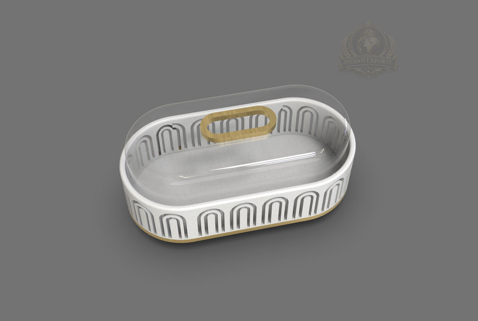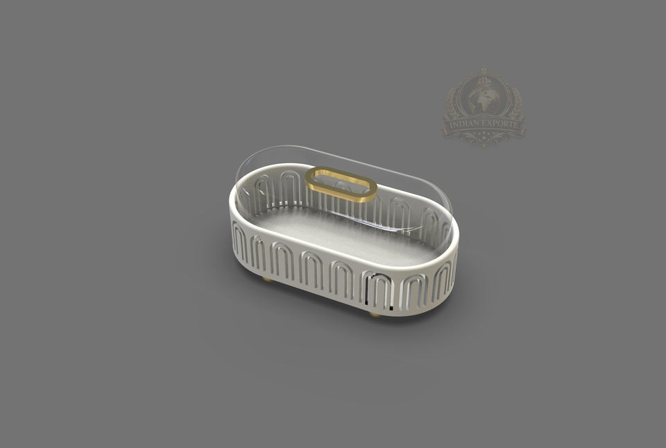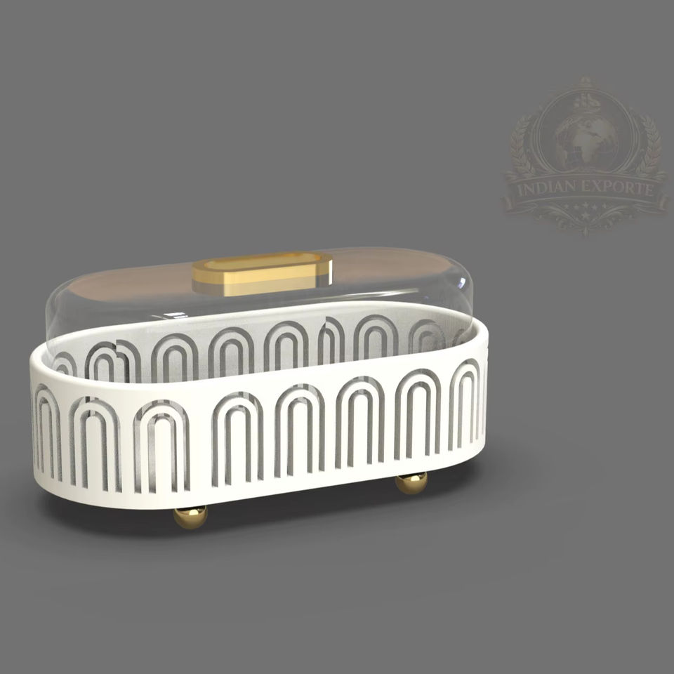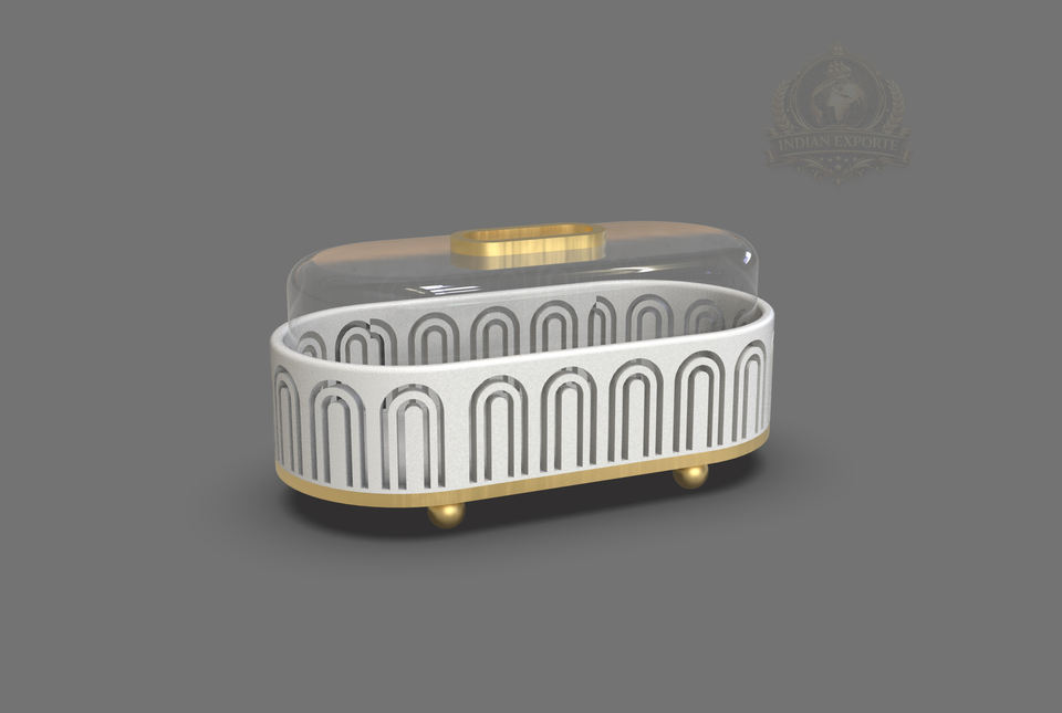 ขาตั้งเค้กทรงพระจันทร์เสี้ยวแบบกลม ทำจากสแตนเลสสีทองและกระจก เป็นมิตรกับสิ่งแวดล้อม พร้อมฝาครอบโดม สำหรับแสดงขนมในช่วงรอมฎอนและอีด
