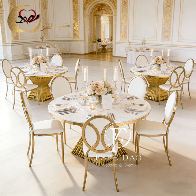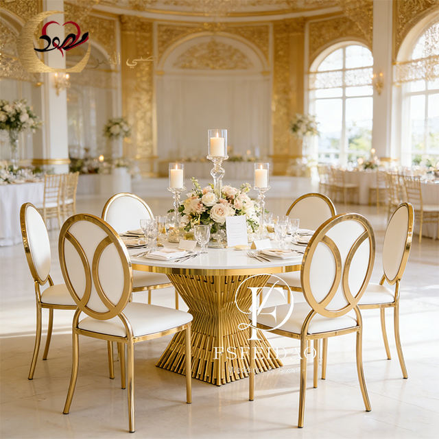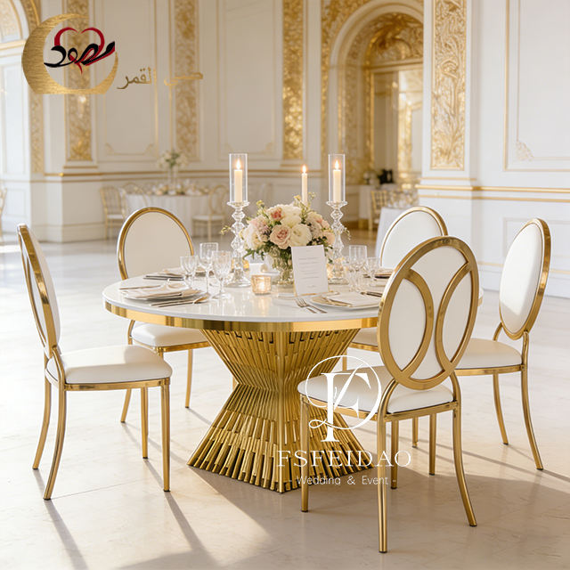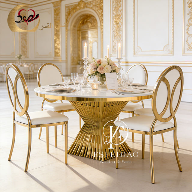 โต๊ะรับประทานอาหารงานแต่งงานดีไซน์ศิลปะสมัยใหม่สแตนเลสสีทอง หน้าโต๊ะ MDF