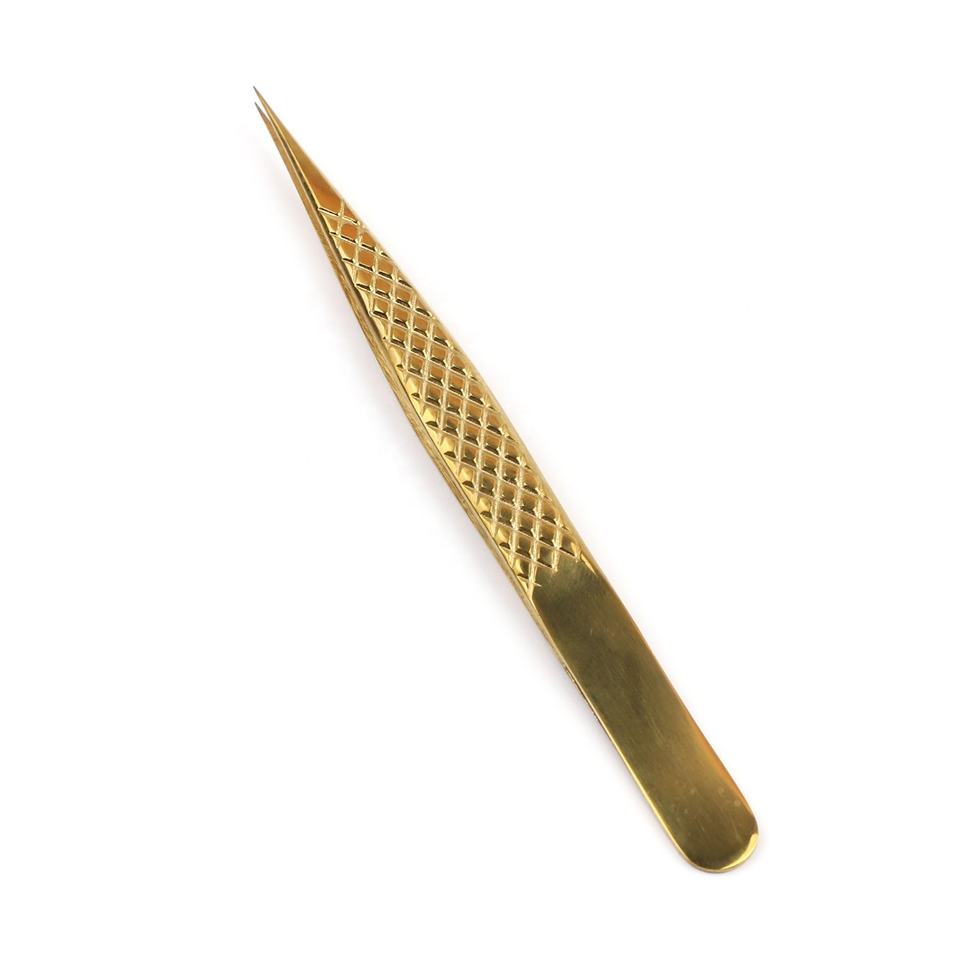 Obexa คีมหนีบขนตาปลอมสีทองแบบมืออาชีพสำหรับต่อขนตาวัสดุสเตนเลสปลายแหลม