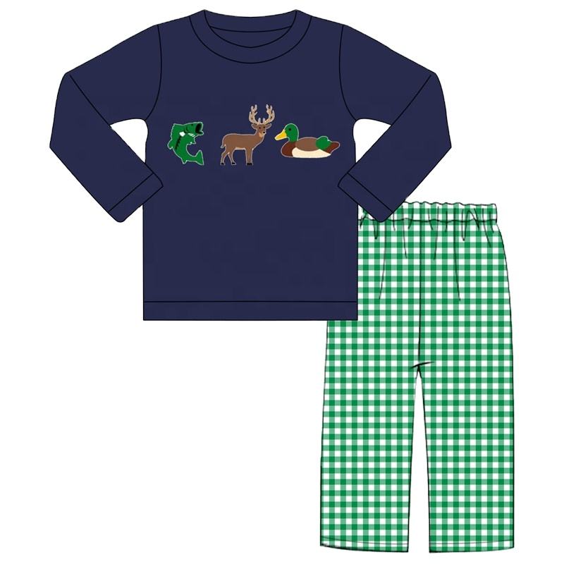 ชื่อสินค้า:ชุดหมีเด็กผู้ชายผ้าฝ้ายสีน้ำเงินกรมท่า ลายเป็ดและกวาง จาก Gold Supplier