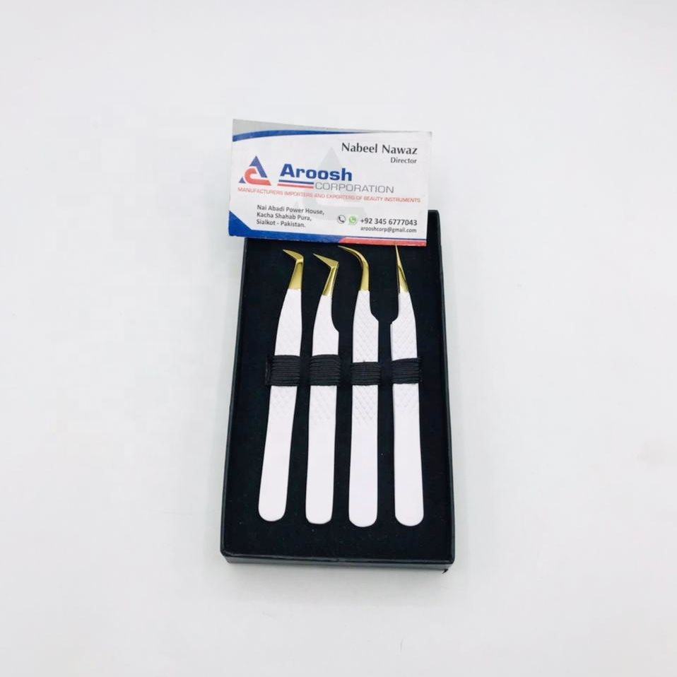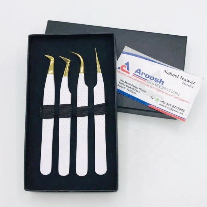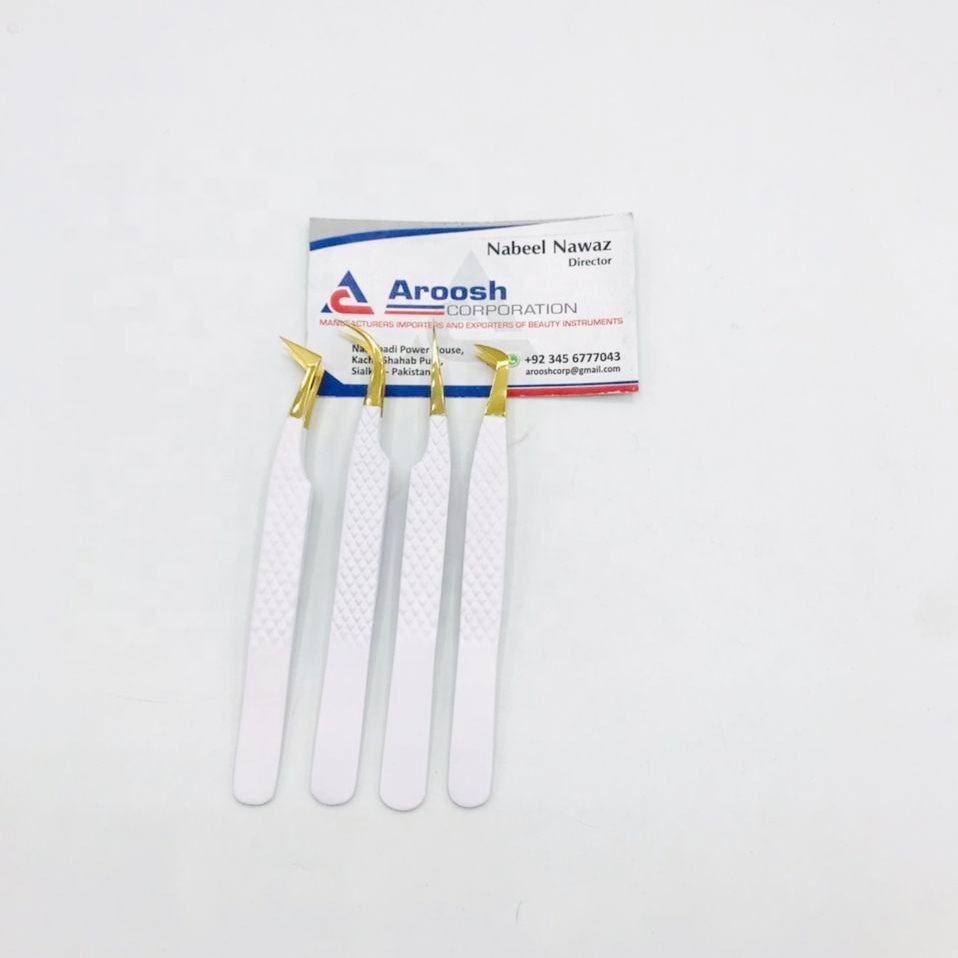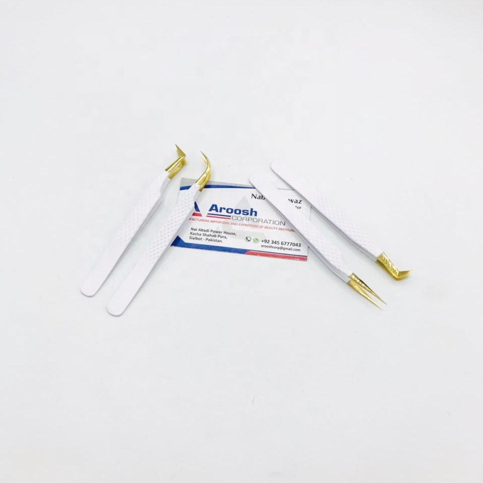 ชุดแหนบสำหรับต่อขนตาสีขาวปลายทองทำจากสเตนเลสสตีลทนทานและขายส่ง