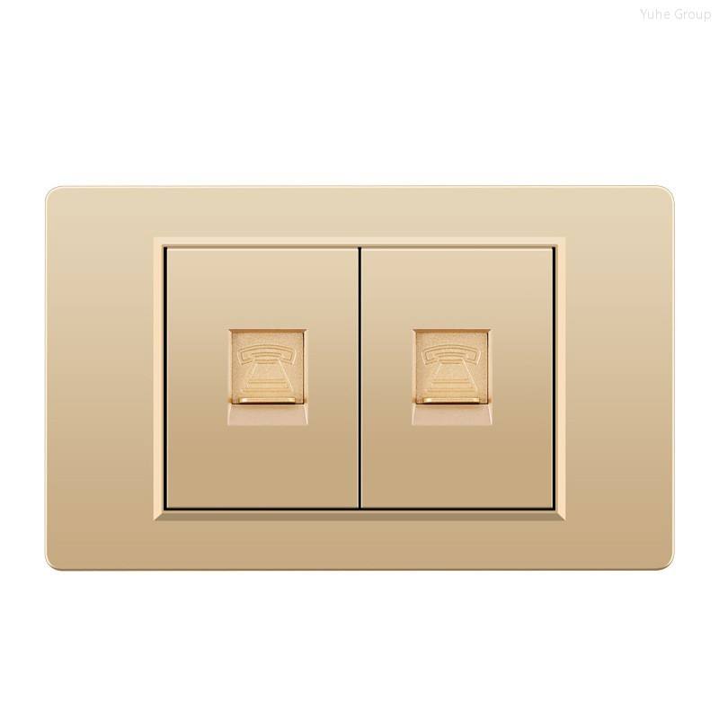 แผงสัมผัสสีทอง ทนทาน ปลั๊กไฟติดผนังแบบ 10A สำหรับคอมพิวเตอร์ พร้อมช่องเสียบโทรศัพท์ RJ11 และสวิตช์แบบรวม
