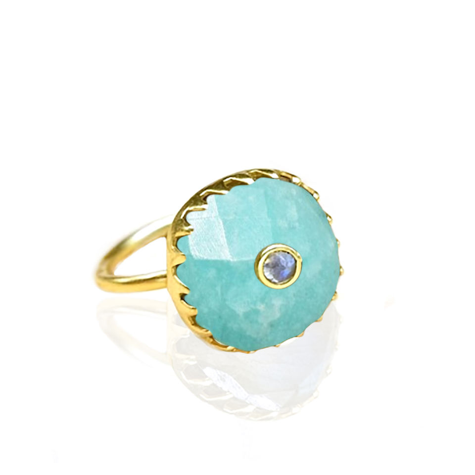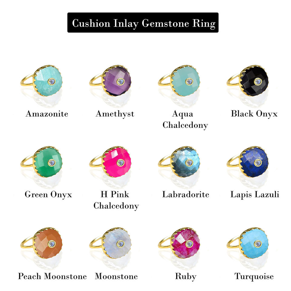 Gold Vermeil Amazonite Cushion Shape Inlay Gemstone Prong Zig Zag Setting 925 Sterling Silver Round Band Jewelry Ring