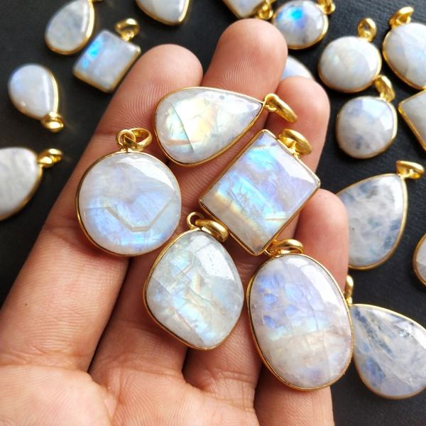 แหวนหินมูนสโตนสีทอง,จี้หินคริสตัล K9แหวนหินมูนสโตนหยกสีเงินจี้หินคริสตัลปากกาแองเจิล