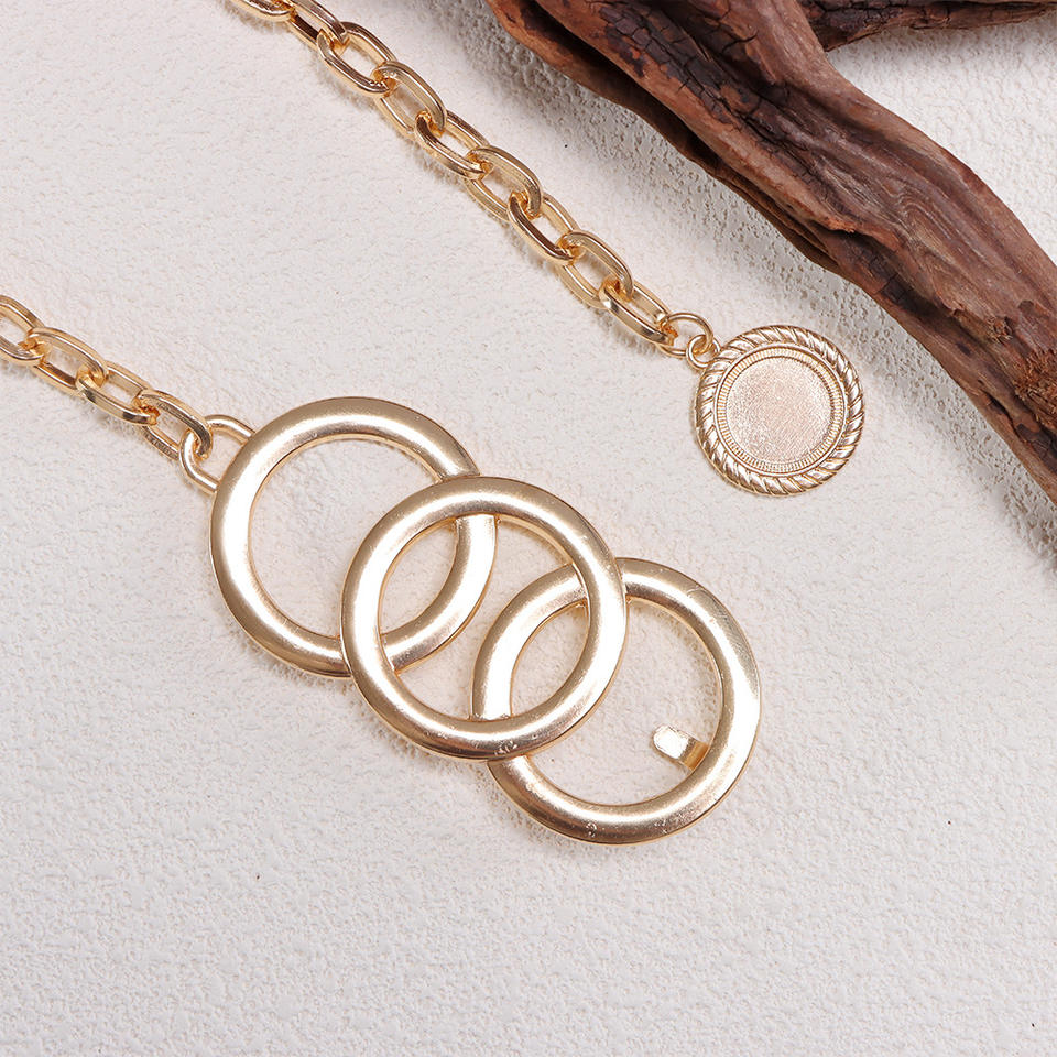 โซ่คาดเอวสีทอง ดีไซน์เรขาคณิตสามวง ทำจากโลหะผสมสังกะสี สำหรับผู้หญิง สวมใส่ได้ทุกวัน