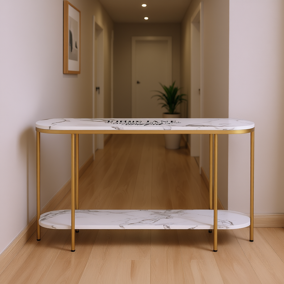 โต๊ะคอนโซล 2 ชั้น ลายหินอ่อนสีทองสไตล์โมเดิร์น ประกอบง่าย สำหรับห้องนั่งเล่น ทางเข้าบ้าน พร้อมชั้นวางของ