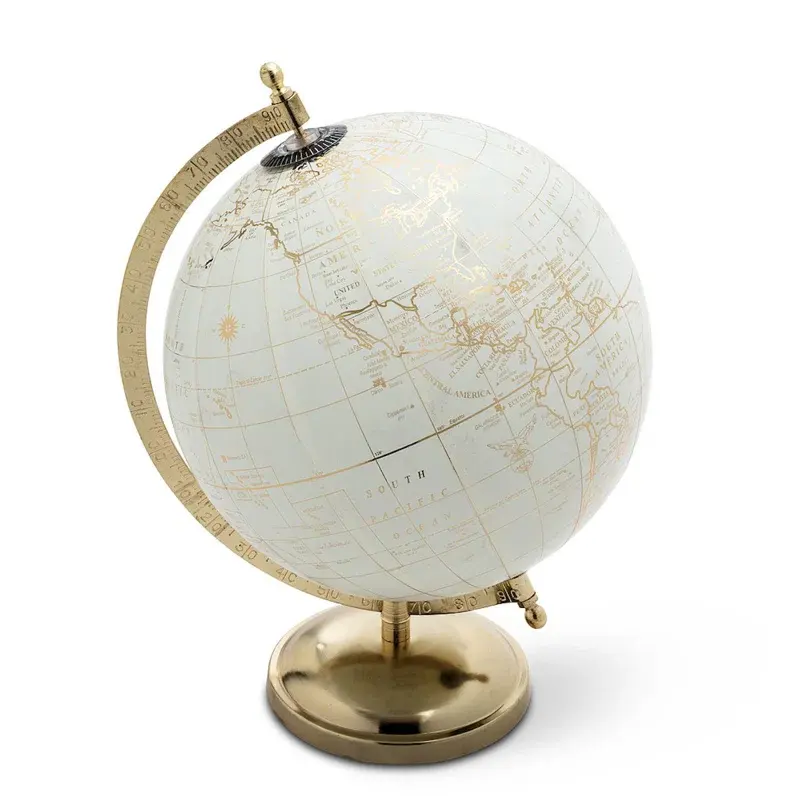 Gold World Globe on Stand Small Decorative Spinning Globe Abbott Collection Geographic Model for Educational or Decorative