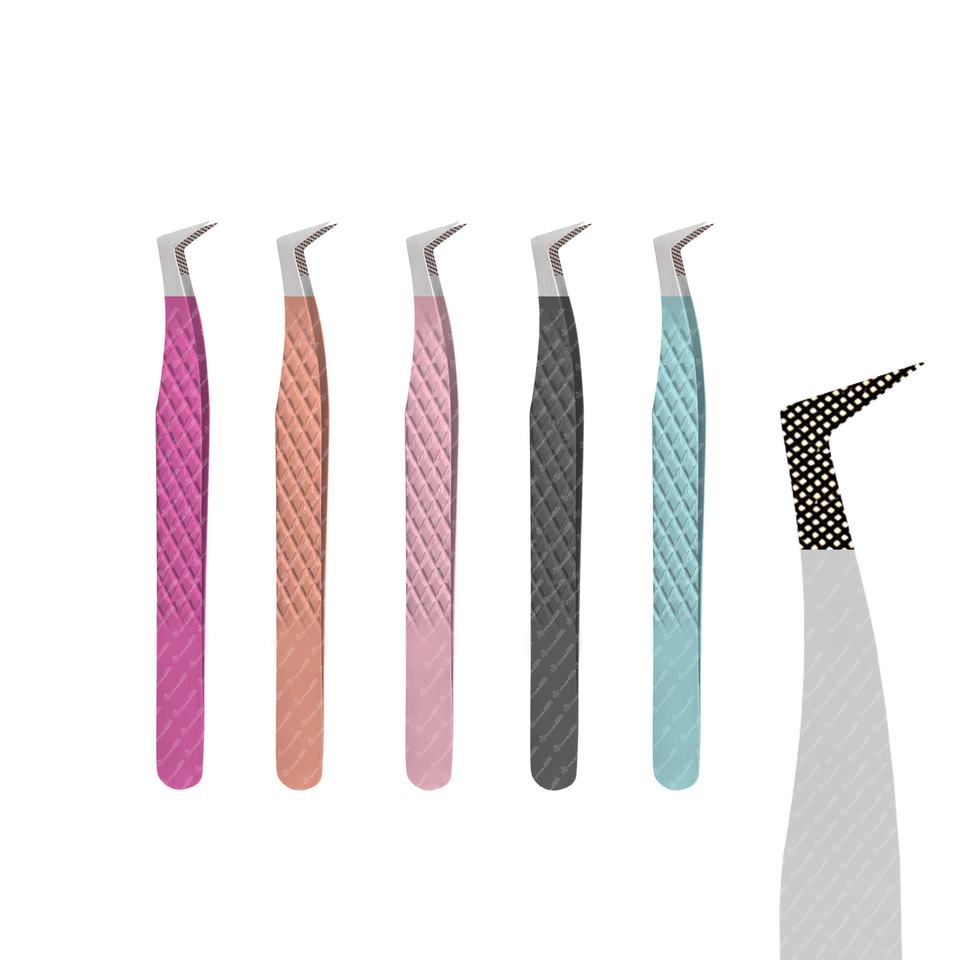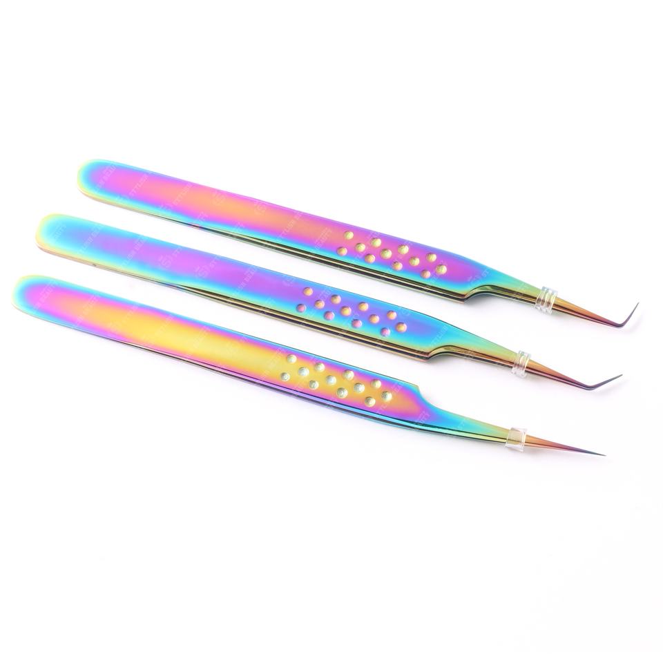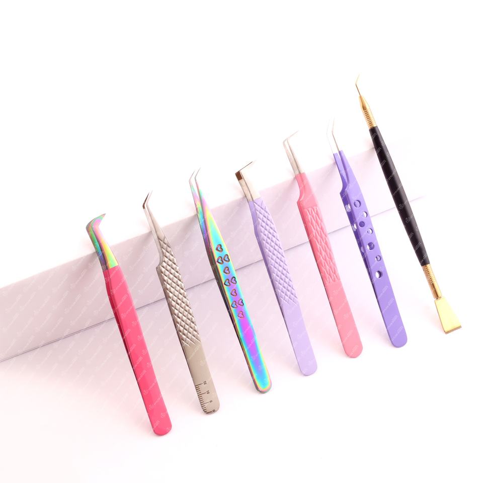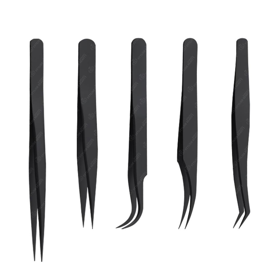 แหนบสแตนเลสสีดำทองสำหรับยกขนตาปลอมแบบปลายแหลมอุปกรณ์ต่อขนตาปลอมฉลากส่วนตัว