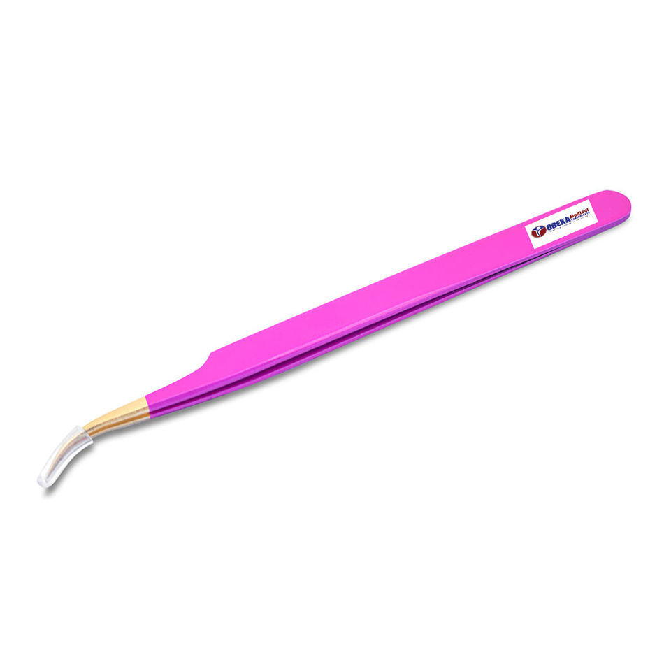 แหนบต่อขนตาสแตนเลสสีชมพูทองและปลายโค้งมน