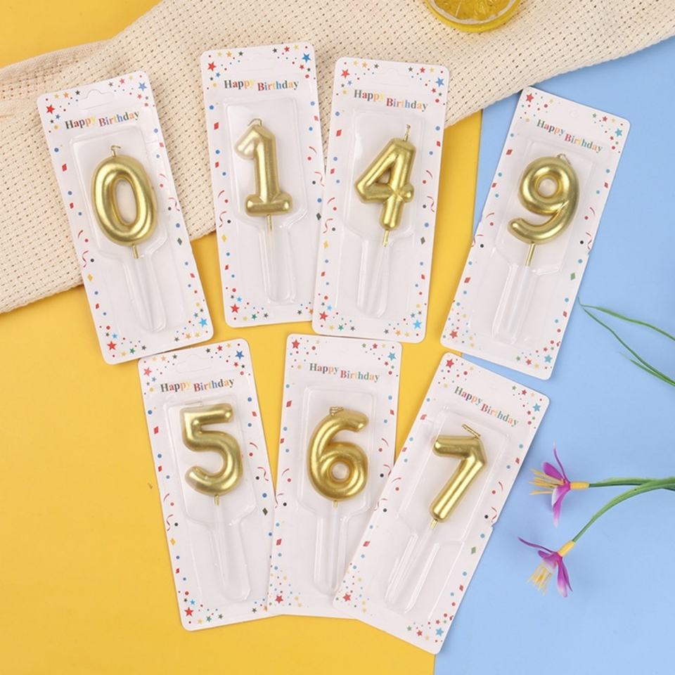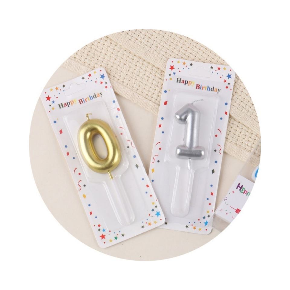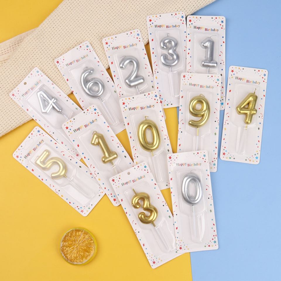 เทียนตัวเลข 0-9 สีทองและสีเงิน ของชำร่วยงานเลี้ยงสำหรับตกแต่งเค้กวันเกิด บรรจุในกล่องเคลือบทอง