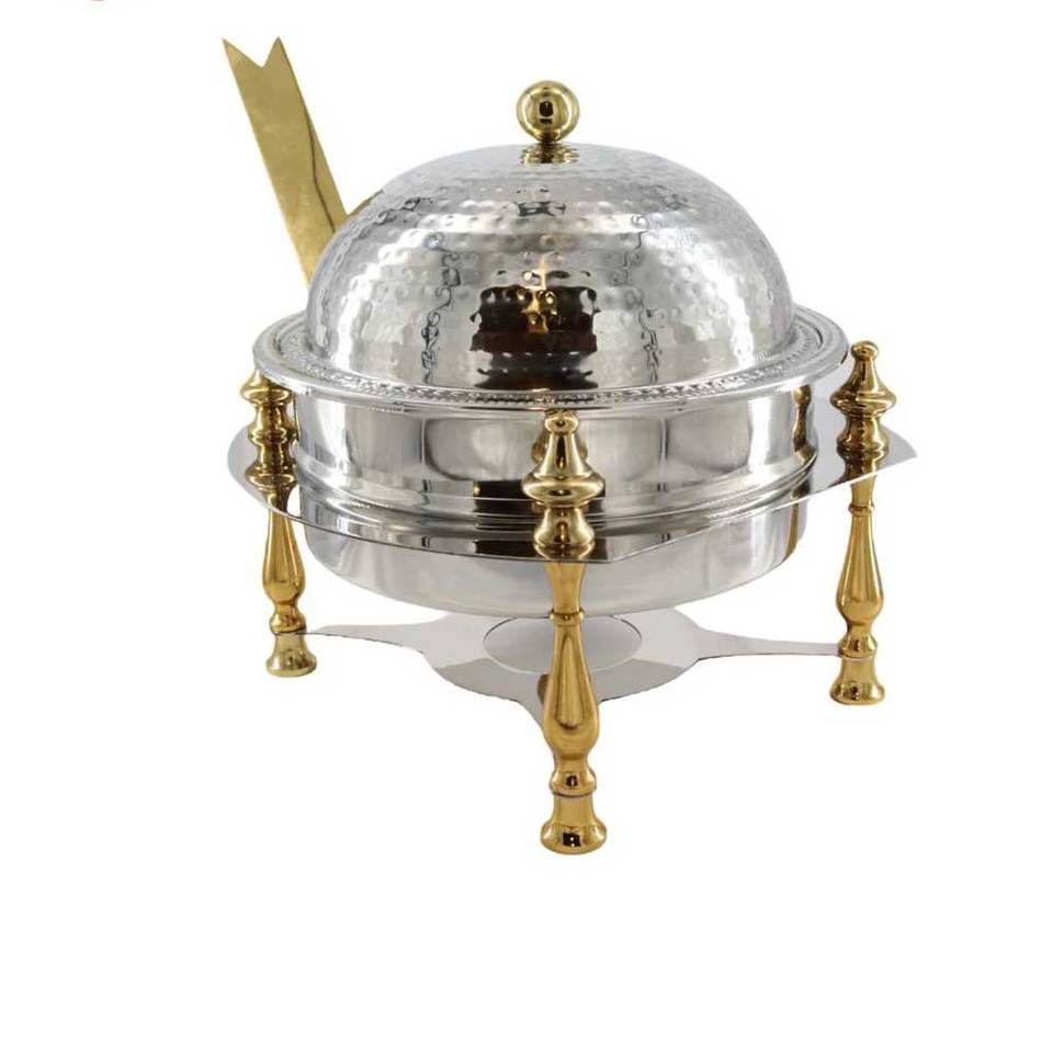 จานอุ่นอาหารสีทองและสีเงินอุปกรณ์สำหรับโรงแรมและร้านอาหารจากอินเดีย