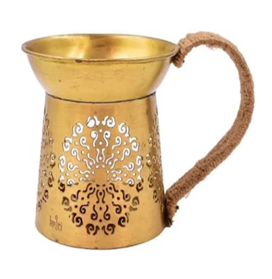 เตาทองที่มีการตัดที่ซับซ้อนและด้ามจับห่อด้วยปอกระเจาเหมาะสำหรับพิธีกรรมและการบำบัดด้วยกลิ่นมีจำหน่ายในราคาขายส่ง