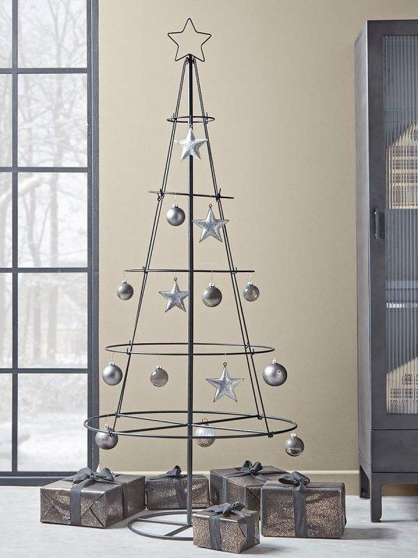 โครงต้นคริสต์มาสโลหะเคลือบทอง เหมาะสำหรับตกแต่งด้วยไฟประดับหรือของตกแต่งวันหยุดที่ทำเองโดยครอบครัว
