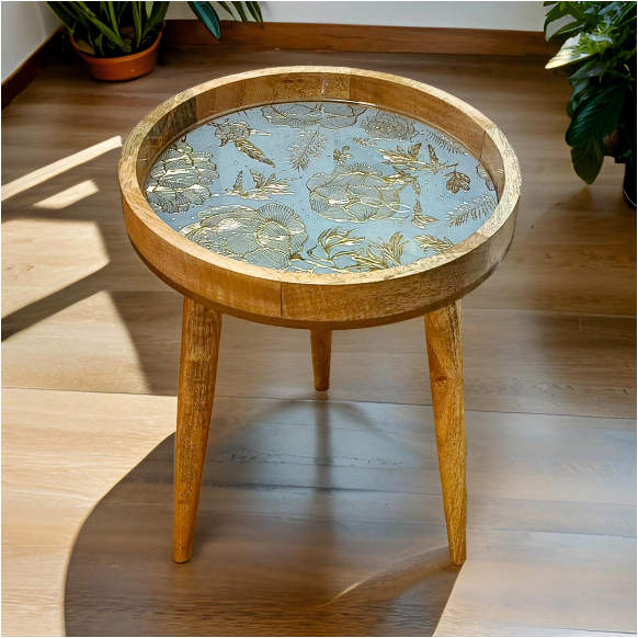 โต๊ะรับประทานอาหารไม้เทียมทรงกลมพิมพ์ลายฟอยล์สีทองแบบทันสมัยสำหรับพื้นที่ขนาดเล็กตกแต่งด้วยธรรมชาติสำหรับห้องนอน