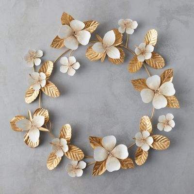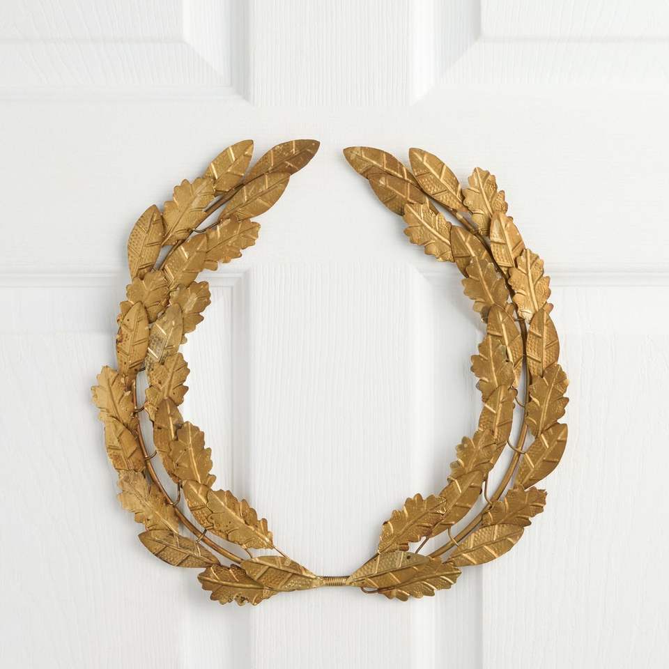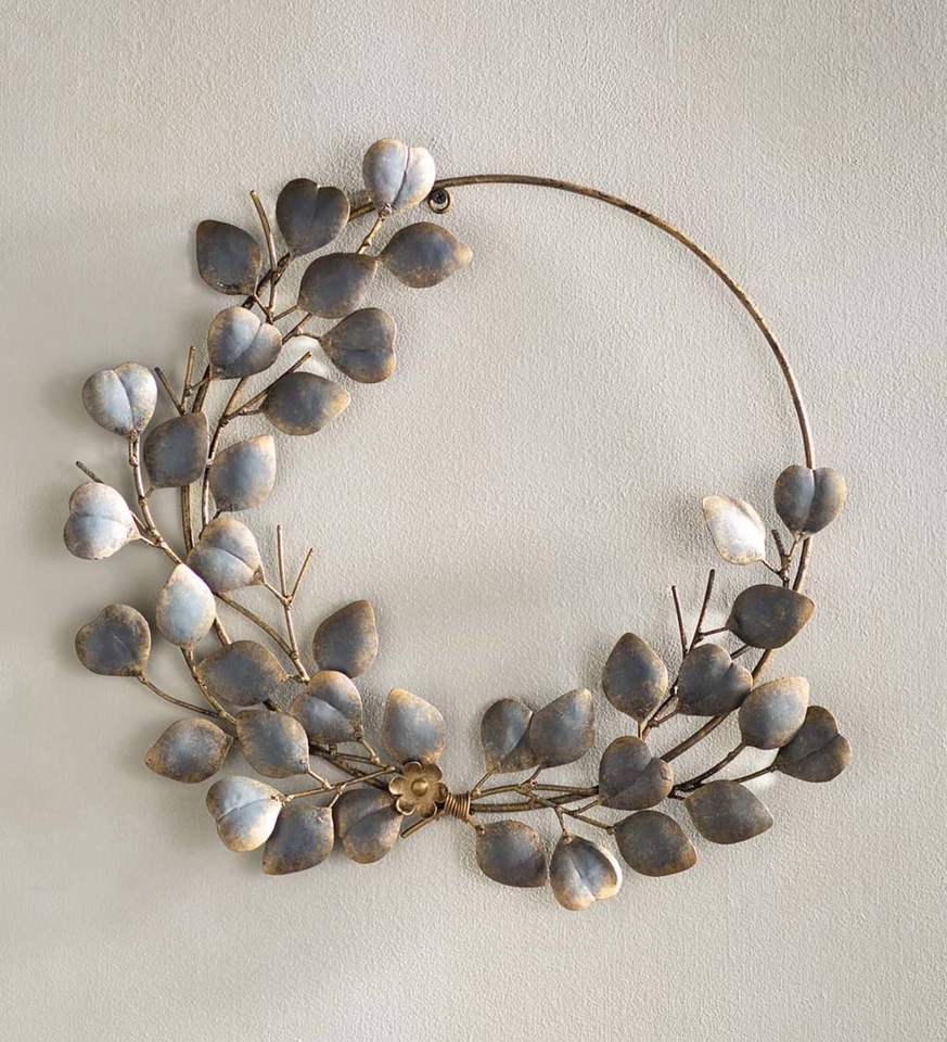 ของตกแต่งผนังด้วยแผ่นทองคำเปลว, งานศิลปะติดผนังรูปใบไม้โลหะ, พวงหรีดตกแต่งผนัง, พวงหรีดโลหะสีทอง, ของตกแต่งผนังรูปวงกลม, ของตกแต่งผนังสุดหรู