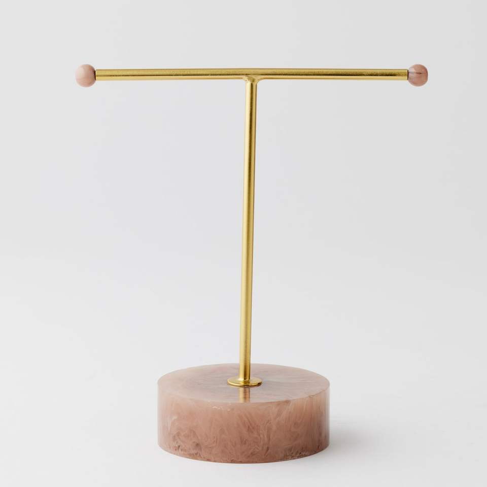 Gold metal jewelry holder, modern jewelry stand, luxury jewelry organizer, countertop jewelry display,