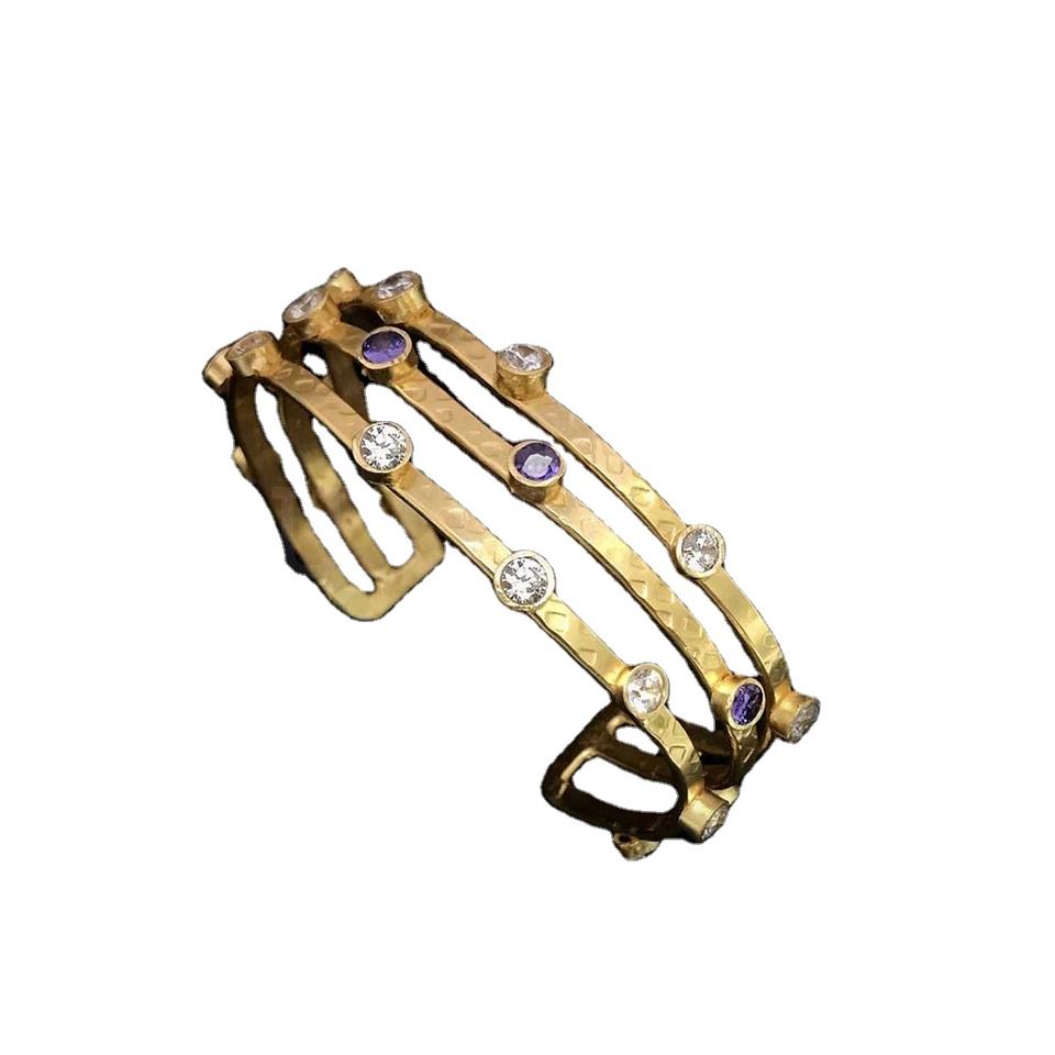 SKU6952กำไลอัญมณีหลากสีดีไซน์เนอร์ชุบทองทำมือหลากสี