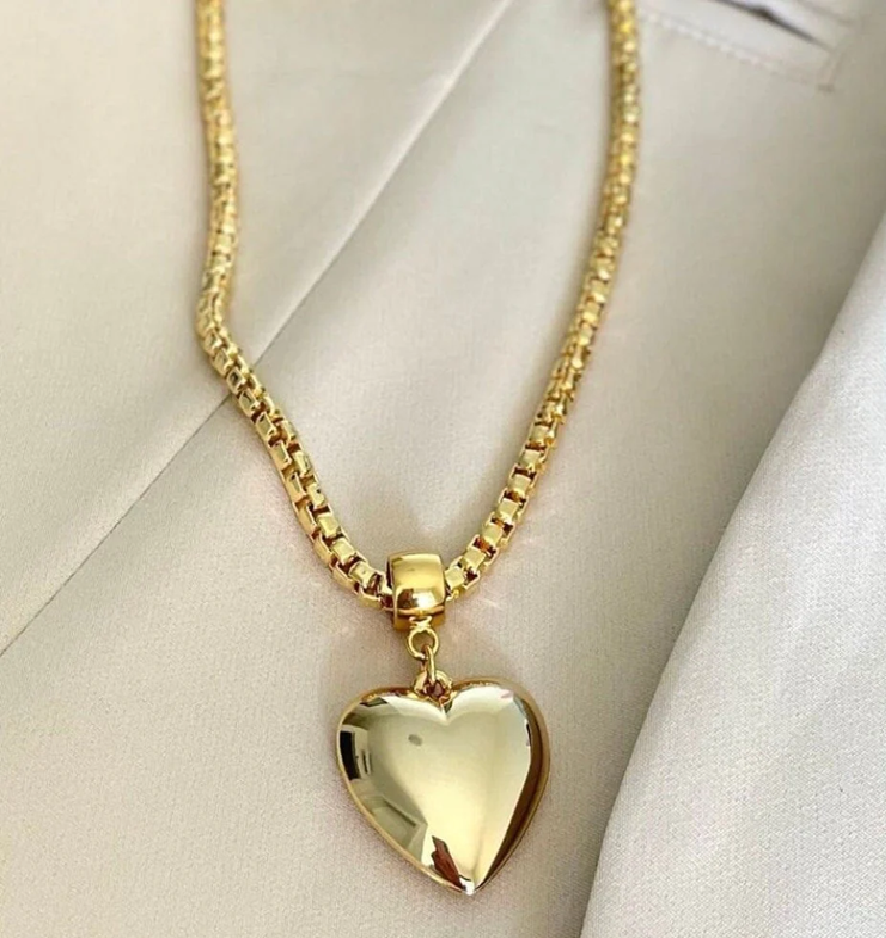 สร้อยคองูรูปหัวใจป่องสีทองเสน่ห์แห่งความรักแบบมินิมอลมีจำหน่ายในราคาขายส่ง
