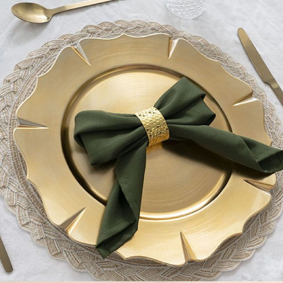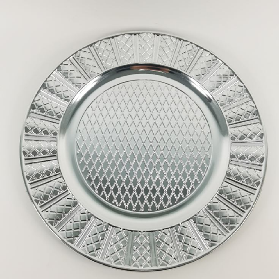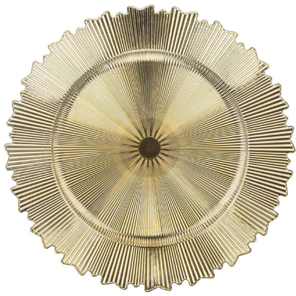 แผ่นชาร์จผิวด้านลายลอนสีทองการออกแบบขอบหยักที่ทันสมัยการตกแต่งงานแต่งงานและงานอีเวนต์มีจำหน่ายในราคาขายส่ง