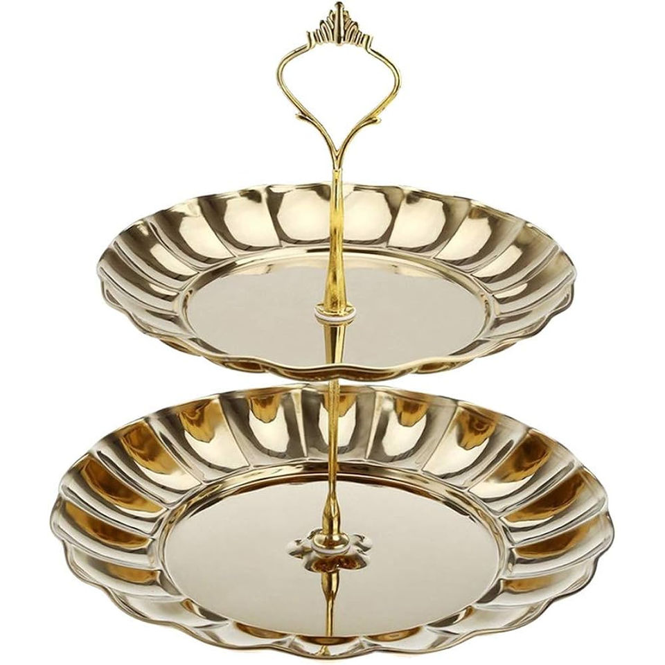 ชั้นวางเค้กสแตนเลส 2 ชั้น สีทอง สำหรับจัดแสดงขนมหวานและคัพเค้ก ถาดเสิร์ฟสำหรับงานแต่งงาน งานวันเกิด