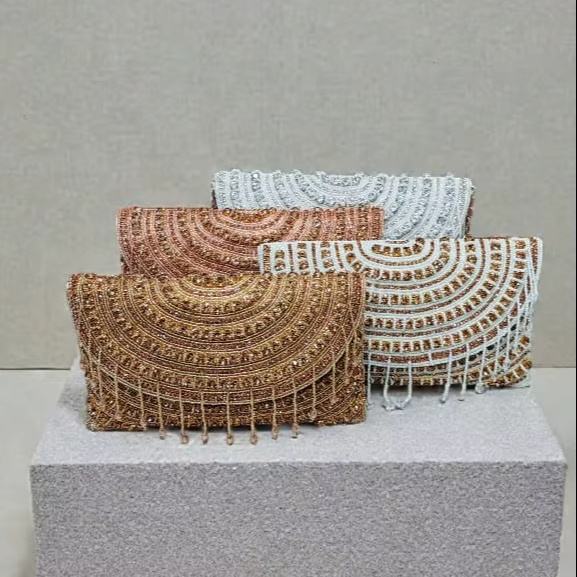 กระเป๋าคลัทช์แบบซองจดหมายประดับคริสตัลสีทองสำหรับเจ้าสาว งานแฮนด์เมดสำหรับงานกลางคืน