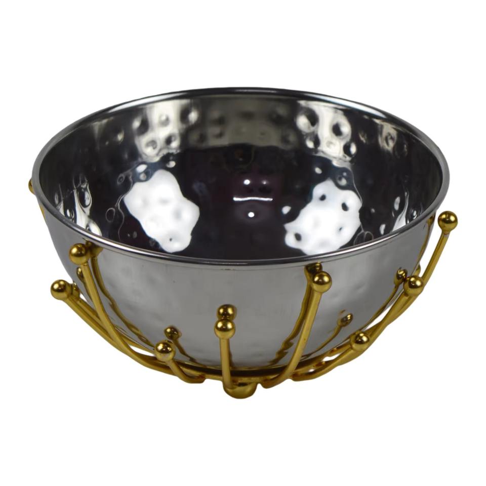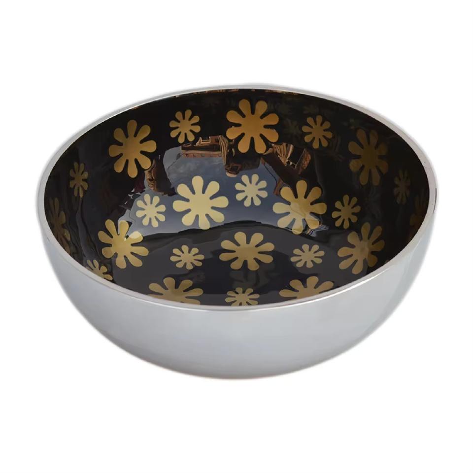 ชามสลัดอลูมิเนียมสีทองทรงกลมทำจากโลหะอุปกรณ์เสิร์ฟสำหรับห้องครัวและบนโต๊ะ