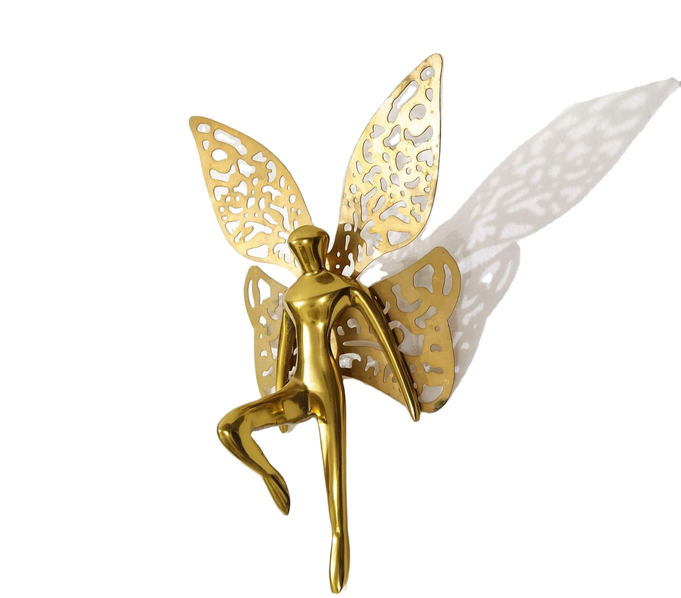เทวดาสีทองพร้อมปีก ของตกแต่งผนังโลหะสำหรับห้องนั่งเล่น