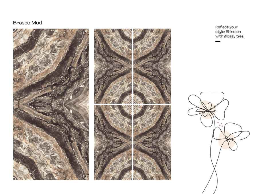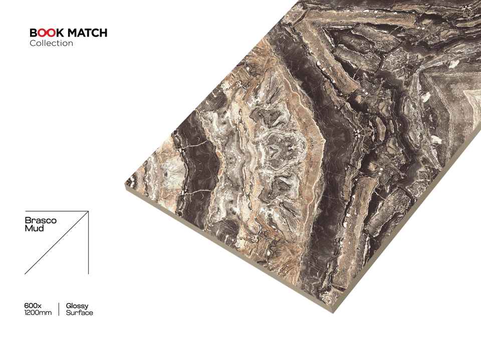 กระเบื้องพอร์ซเลนขนาด 600x1200 มม. ลายหินอ่อนแบบ Book Match เงา สำหรับปูพื้นและผนัง กระเบื้องแผ่นใหญ่