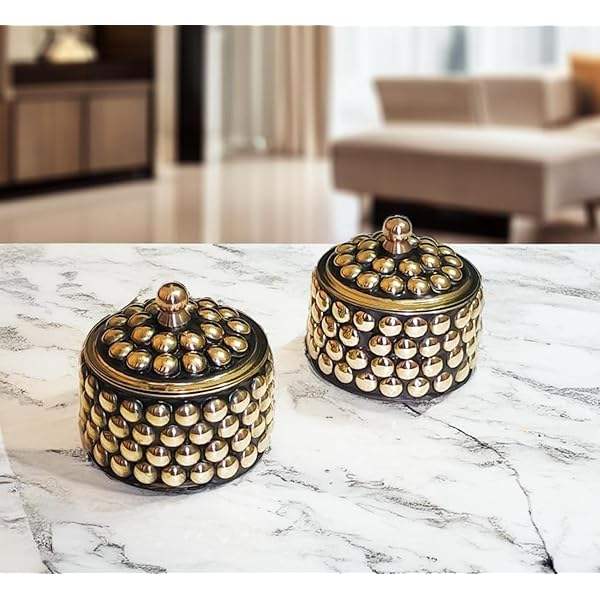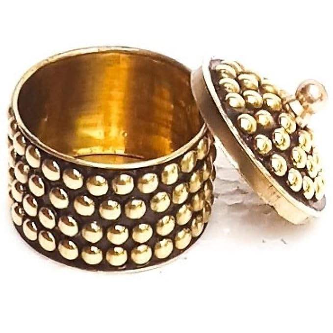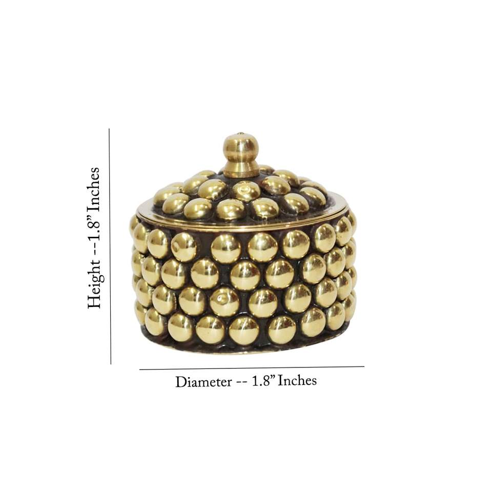 กล่องซินดูร์ทองเหลืองพร้อมตกแต่งลายวัดและลายมงคลสำหรับเทศกาล ดีไซน์แบบดั้งเดิม เทคนิคการขัดเงาด้วยผง ราคาประหยัด