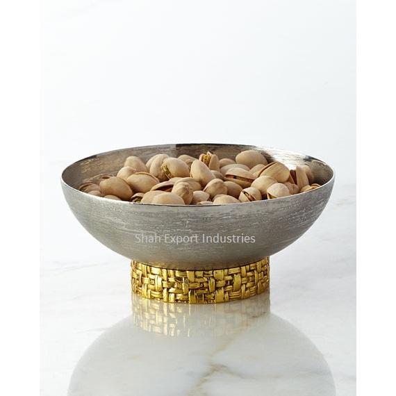 ชามเสิร์ฟสลัดทรงกลมทำจากโลหะรูปผีเสื้อสีทองสำหรับวางบนโต๊ะในบ้านและเครื่องครัวชามเสิร์ฟผลไม้