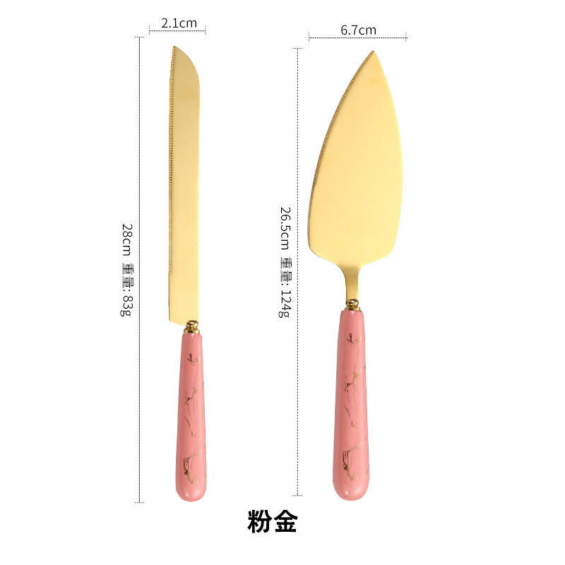 ไม้พายเค้กสีทองพร้อมด้ามจับเซรามิก สแตนเลสสตีล ไม่ติดกระทะ อุปกรณ์ทำขนมสำหรับตกแต่งและเสิร์ฟเค้ก