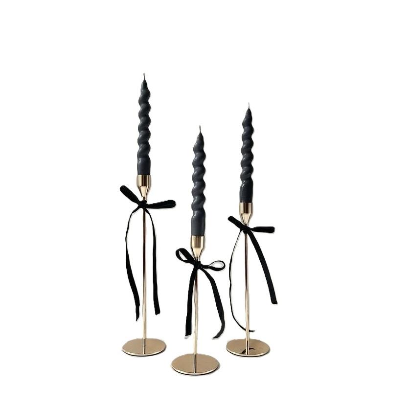 เชิงเทียนสีทองพร้อมริบบิ้นสีขาวเชิงเทียนเหล็กมีหลายสีที่ไม่ซ้ำกันเสาสำหรับงานอีเวนต์โลโก้ขนาดที่กำหนดเอง