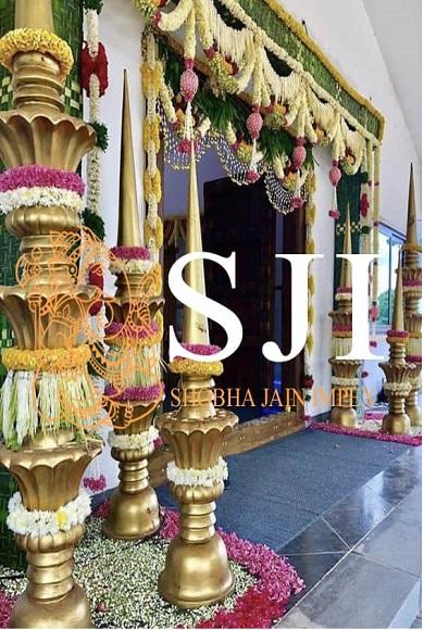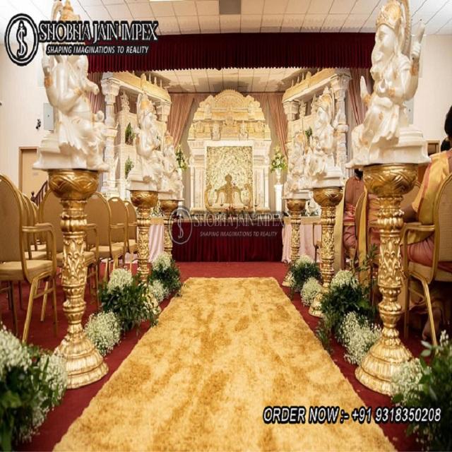 เสาทางเดินในงานแต่งงานแกะสลักสีทองพร้อมรูปปั้นพระพิฆเนศ