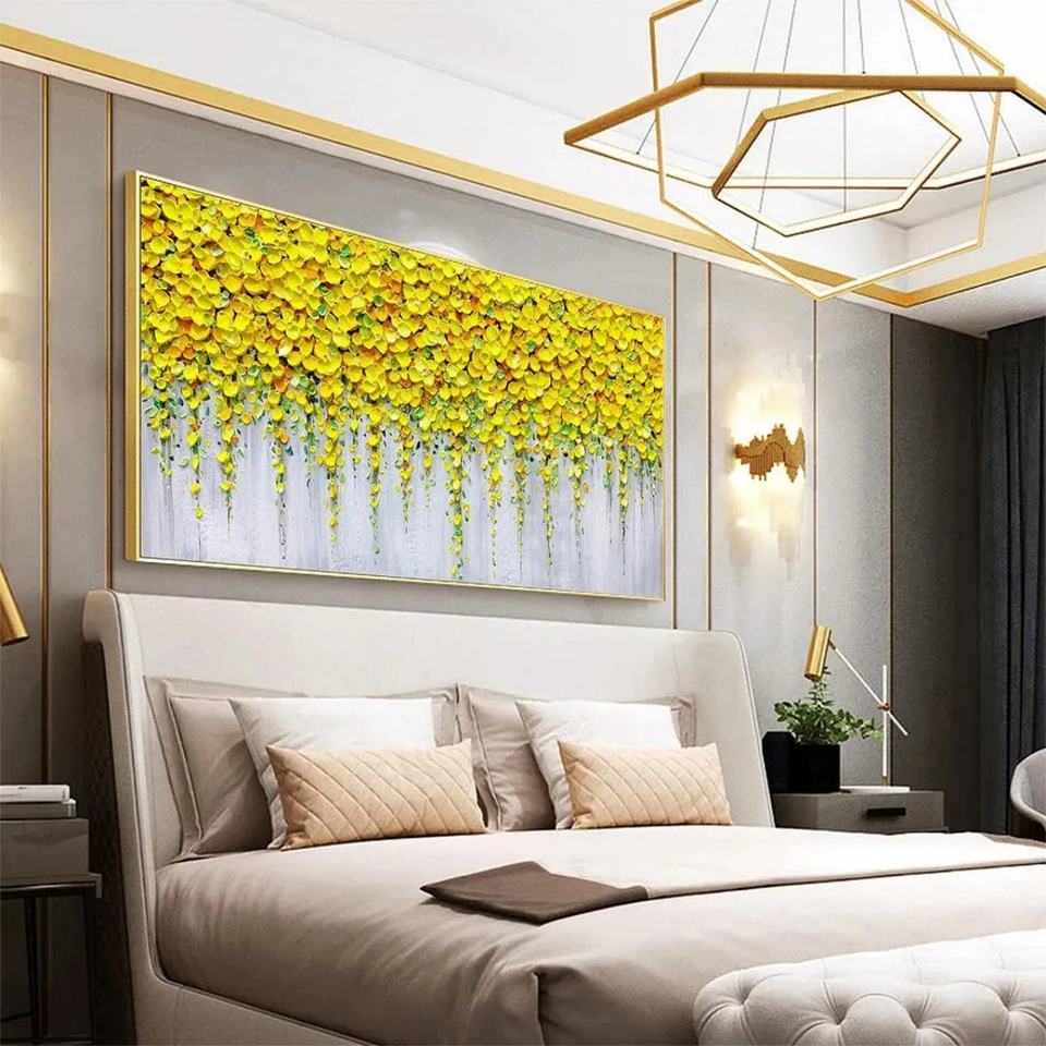 ภาพวาดสีน้ำมันนามธรรมแบบอิมพาสโตสีเหลืองทอง ภาพนิ่ง วัสดุผ้าใบทำมือ งานศิลปะตกแต่งบ้าน โรงแรม แกลเลอรี่ ภาพสามมิติ สวยงาม