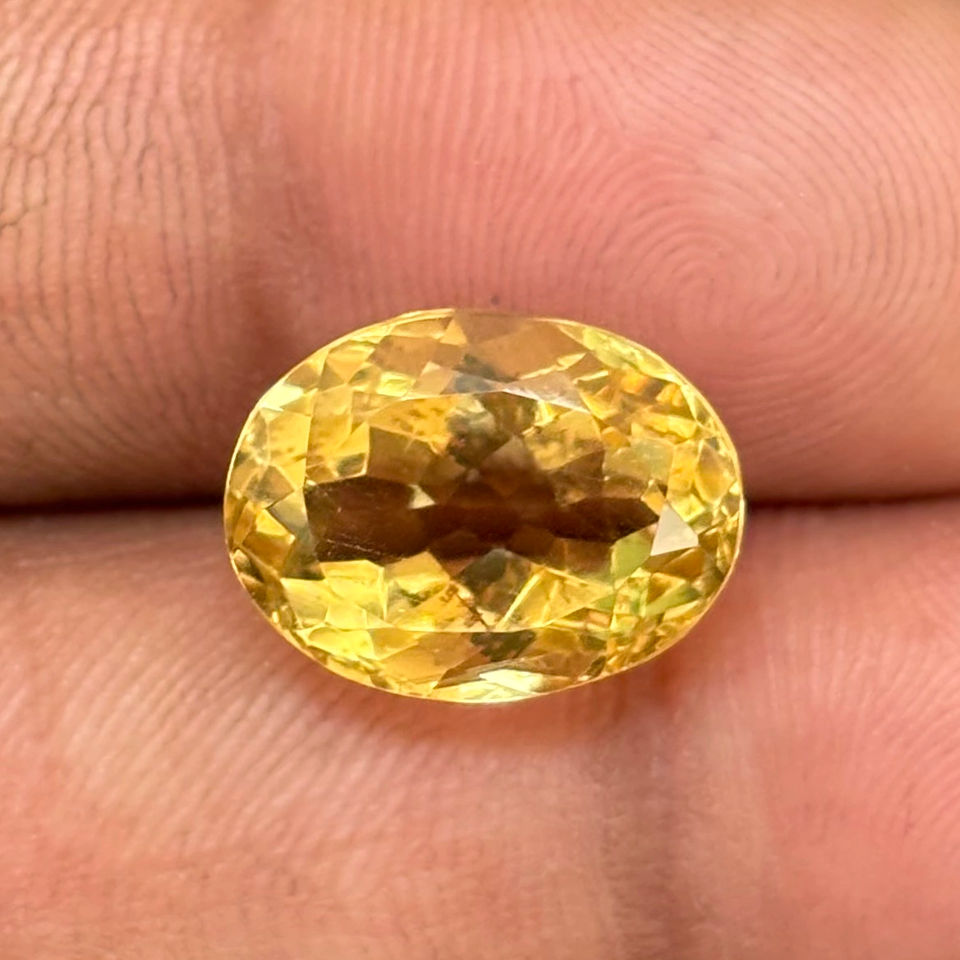 พลอยสังเคราะห์เจียระไนรูปวงรีสีทองสีเหลืองมะนาวปรับเทียบหลวมสำหรับการทำเครื่องประดับโดยตรงจากอินเดีย