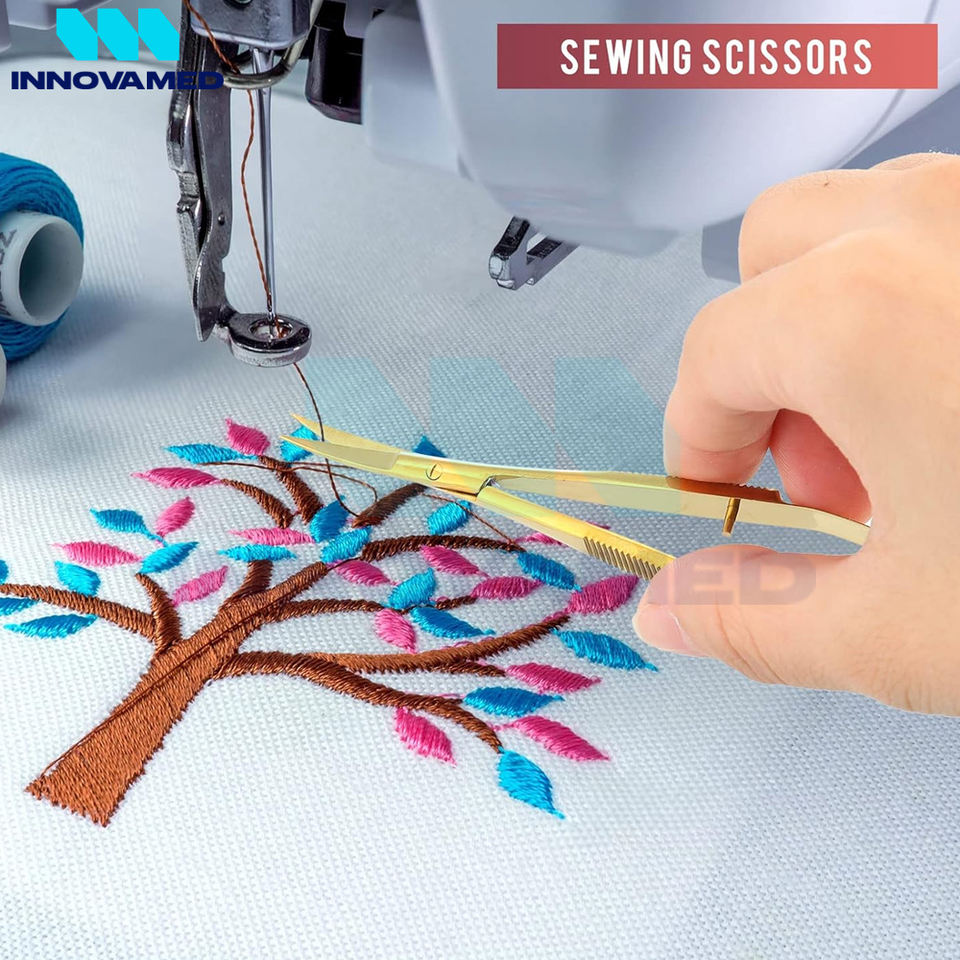 กรรไกรตัดขนตาตรงขนาด5นิ้วทำจากสเตนเลสสตีลแม่นยำทนทานต่อการตัดเล็มขนตาสีทอง