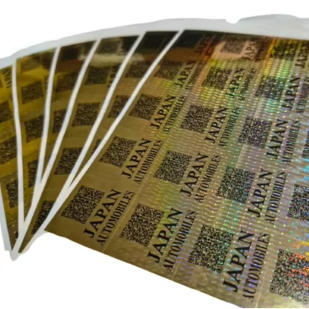 สติกเกอร์โฮโลแกรมสีทองแบบมีกาวในตัว พร้อมคิวอาร์โค้ดและโลโก้ สำหรับฉลากบรรจุภัณฑ์