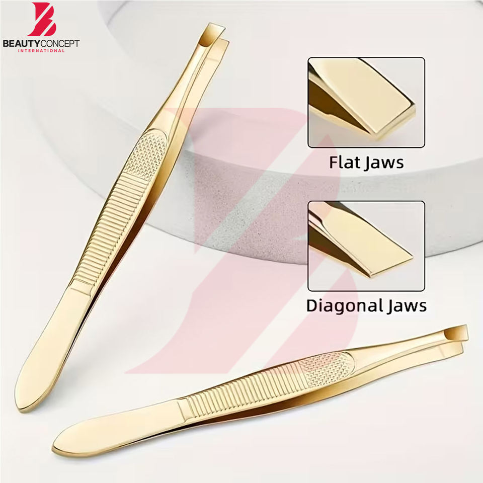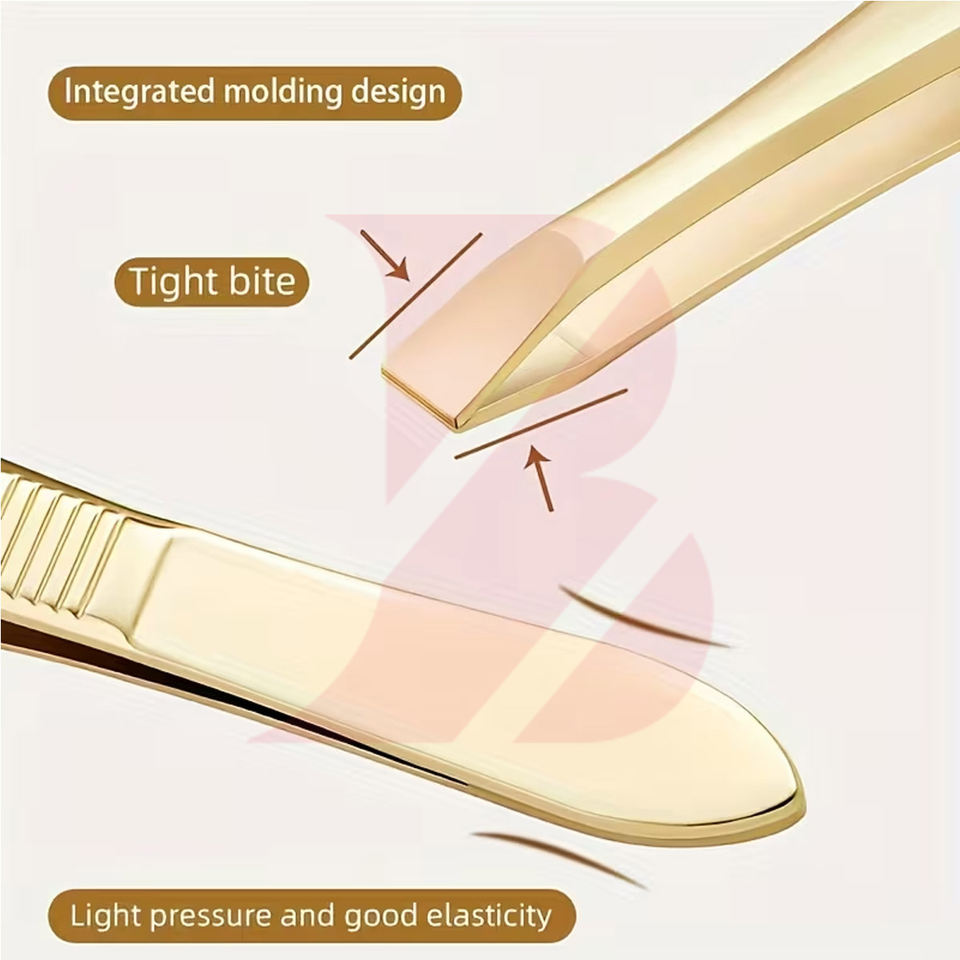 แหนบคิ้วคุณภาพสูง สีทอง ดีไซน์ตามหลักสรีรศาสตร์ ทันสมัย ปรับแต่งได้ พร้อมด้ามจับกันลื่น และใช้งานได้ยาวนาน