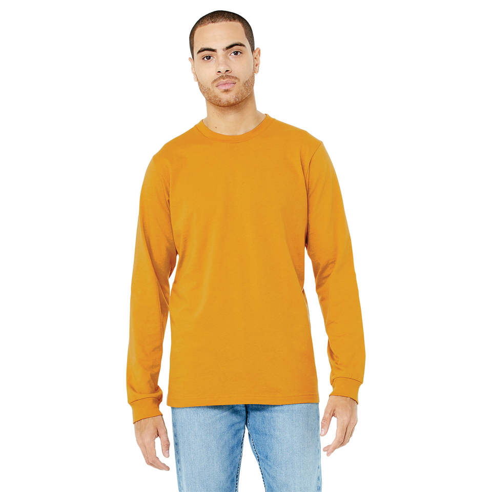 สีทองสบาย: เสื้อยืดคอกลมแขนยาวผ้าฝ้าย 100% Airlume หวี - ไข่มัสตาร์ด สไตล์ไร้กาล