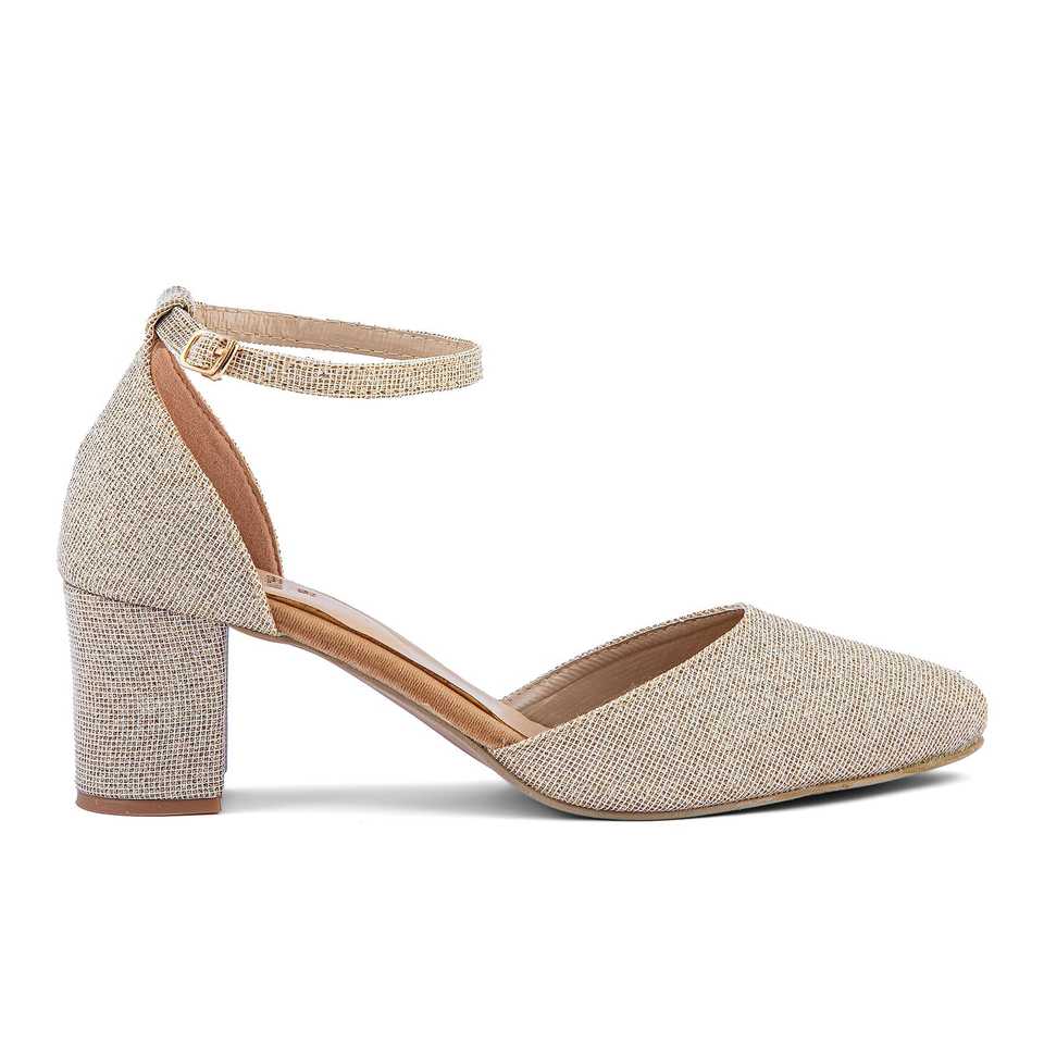 ชุดเดรส WN7388สีทองสำหรับฤดูใบไม้ร่วงรองเท้าแตะส้นเตี้ยหัวแหลมปิดนิ้วเท้า PU ปิดแบบสลิปออนขนาดเล็ก