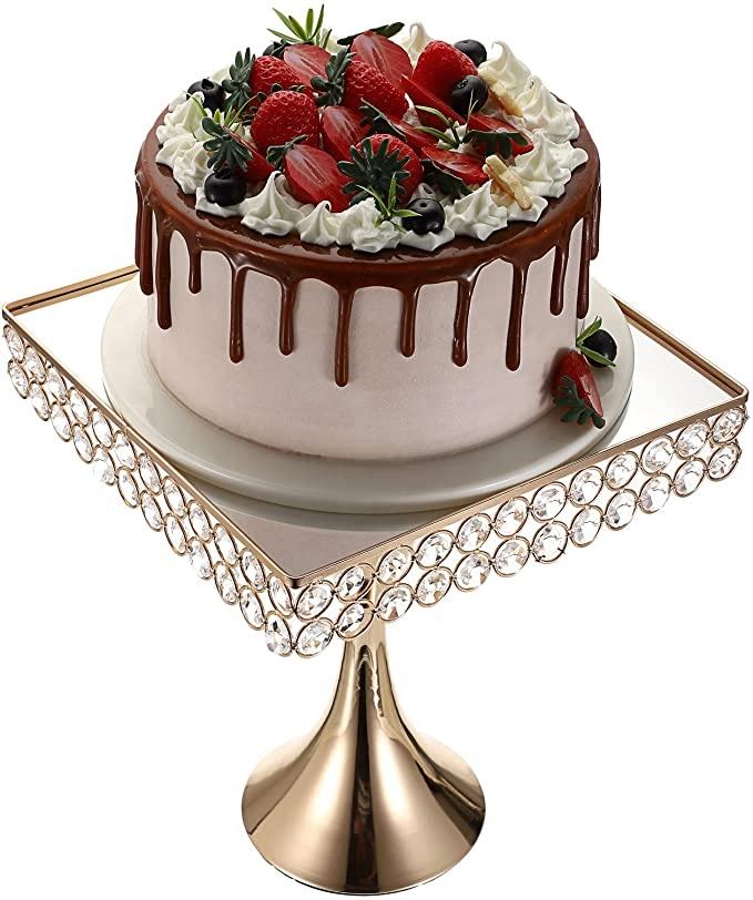 จานคริสตัลใส่เค้กทองคำพร้อมฐานโลหะ,ที่วางคัพเค้กแบบตั้งโชว์จานเค้กสำหรับงานแต่งงานงานวันเกิดงานสำเร็จการศึกษาวันคริสต์มาส