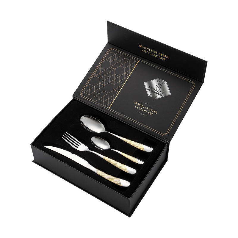ชุดช้อนส้อมทองคำ 24 ชิ้น สแตนเลส มีด ส้อม ช้อน ชุดอาหารค่ำ ชุดอาหารงานแต่งงาน ทนทาน ดีไซน์ทรงสี่เหลี่ยม
