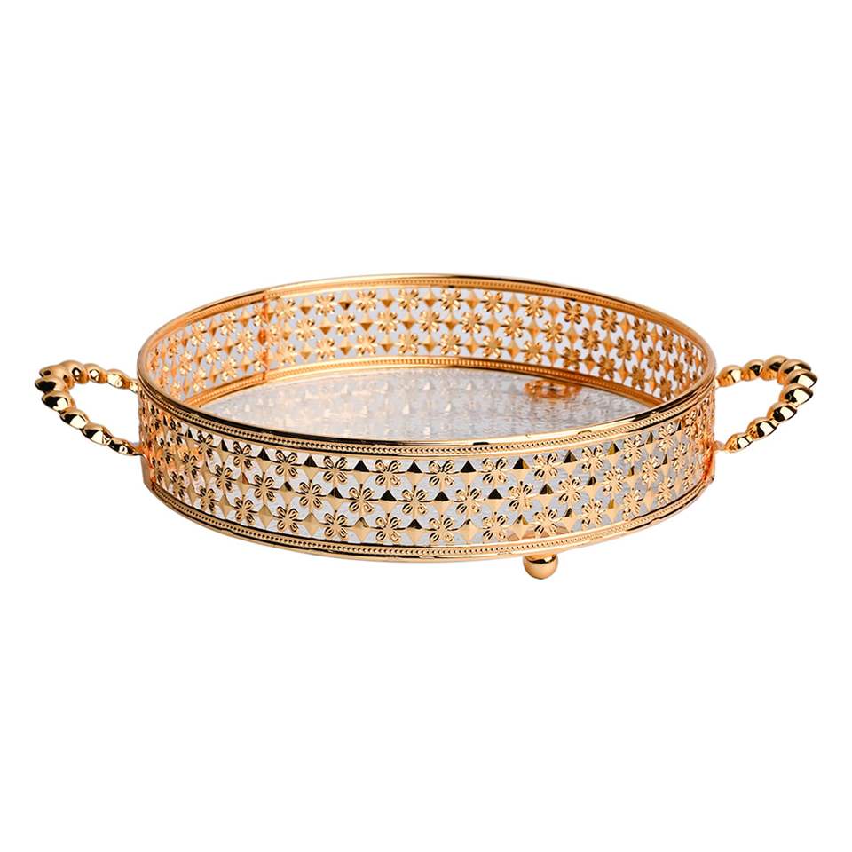 Golden Cutwork Metal Decorative Floral Storage Basket Eco-Friendly Mini Handle Modern Design Home Decor Festivals Parties Sweets