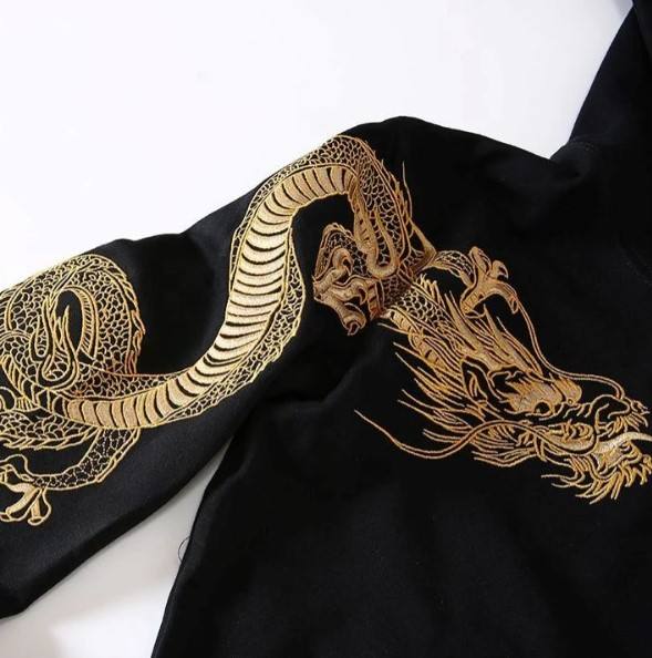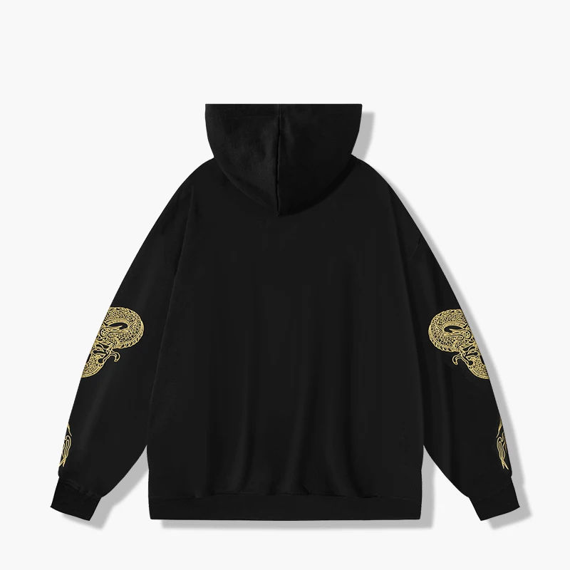 เสื้อฮู้ดมังกรสีทองปักลายยูนิเซ็กส์เสื้อสวมหัวทรงโอเวอร์ไซส์เสื้อมีฮู้ดปักโลโก้ตามสั่งสำหรับผู้ชายและผู้หญิง