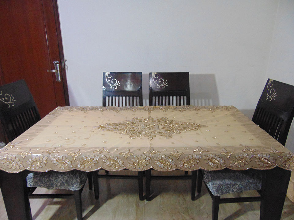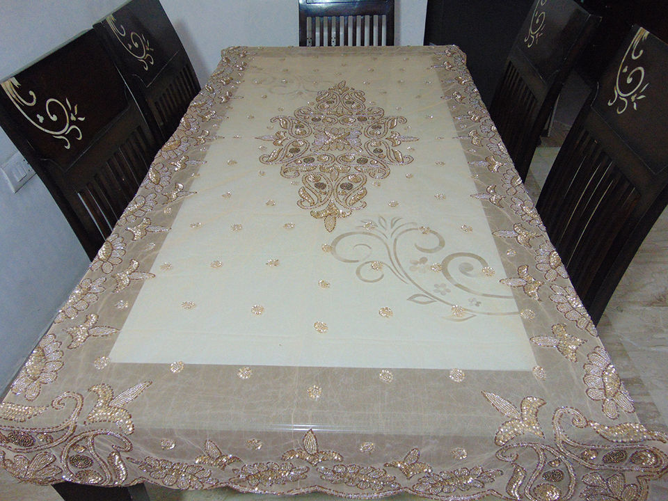 ผ้าปูโต๊ะ6-Seater รับประทานอาหารปักสีทองทำด้วยมือหรูหราผ้าปูโต๊ะสำหรับงานเลี้ยงในบ้านและงานแต่งงาน