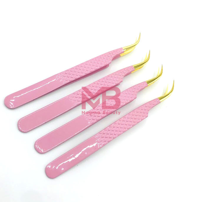 แหนบต่อขนตาปลายแหลมแบบเส้นใยสีทอง สแตนเลสสตีล พร้อมด้ามจับ รุ่นใหม่ สำหรับต่อขนตา