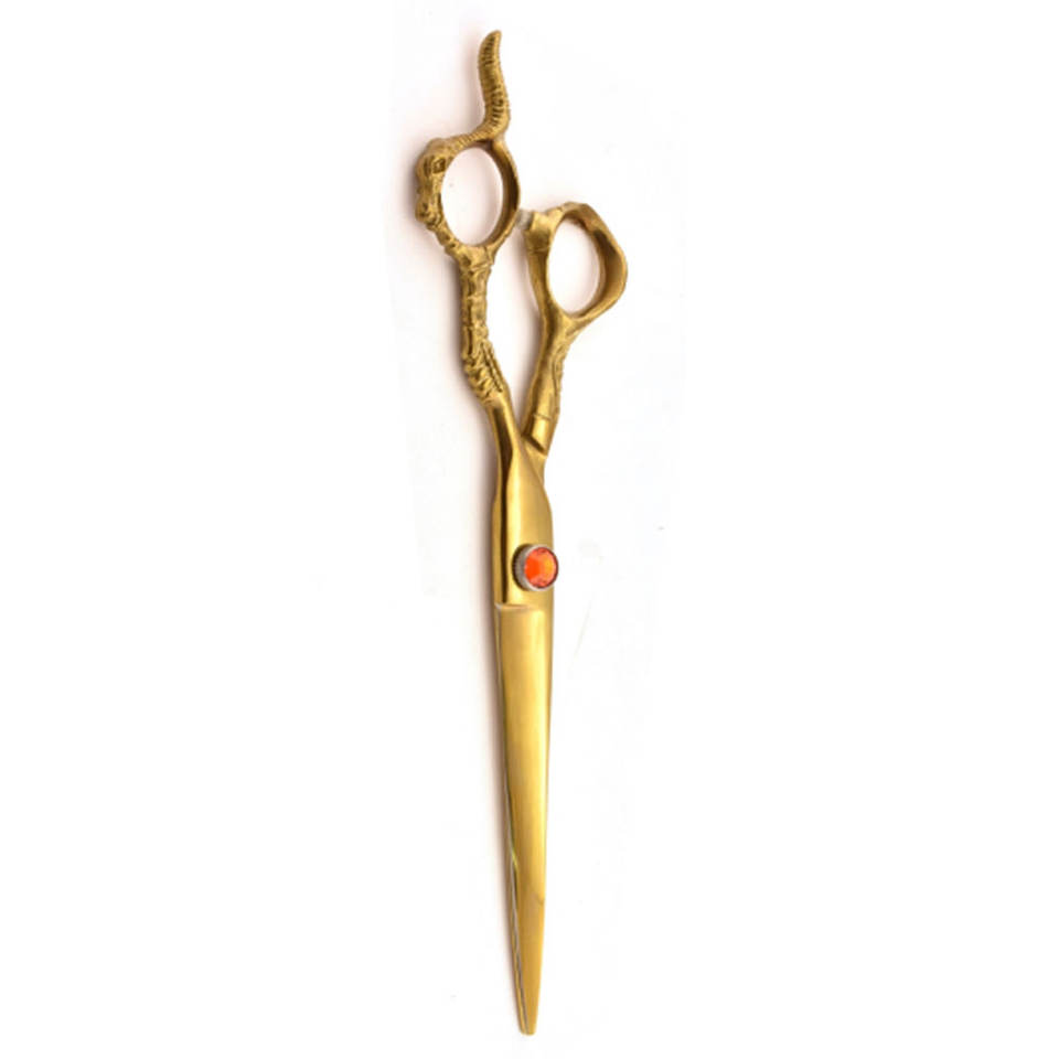 กรรไกรช่างตัดผมสีทองพร้อมด้ามจับดีไซน์มังกรที่ซับซ้อนกรรไกรตัดผมระดับมืออาชีพระดับพรีเมียมสำหรับช่างตัดผม