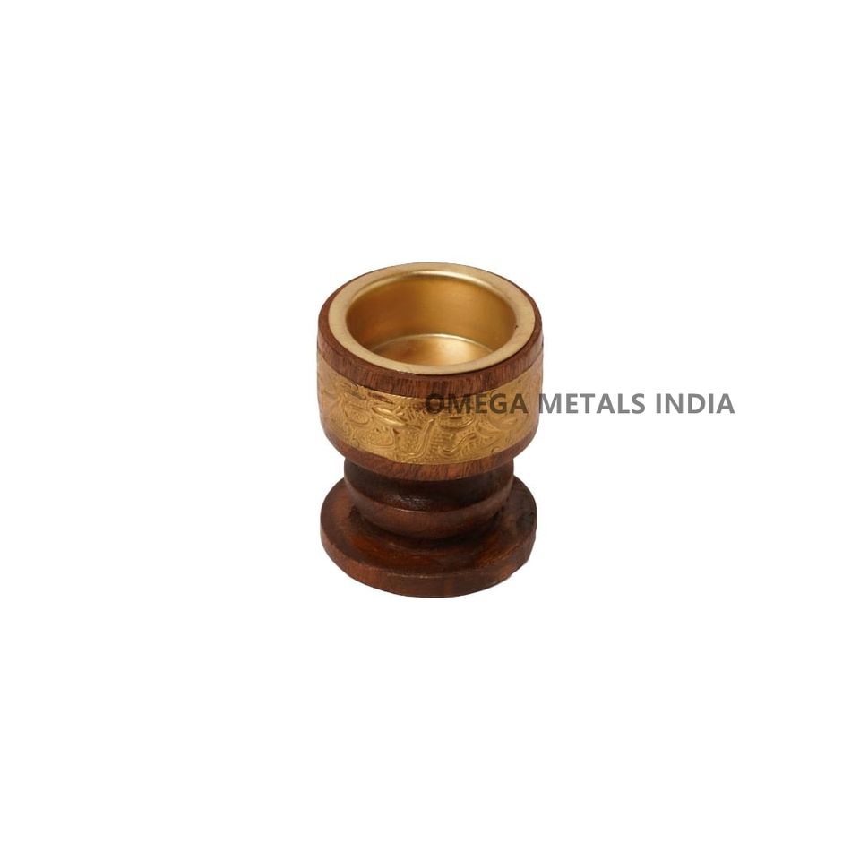 ที่ใส่บาคูร์สแตนเลสสตีลเคลือบทอง พร้อมฐานไม้ สำหรับเผาเครื่องหอมอูดแบบอาหรับ ของตกแต่งบ้าน ของขวัญ