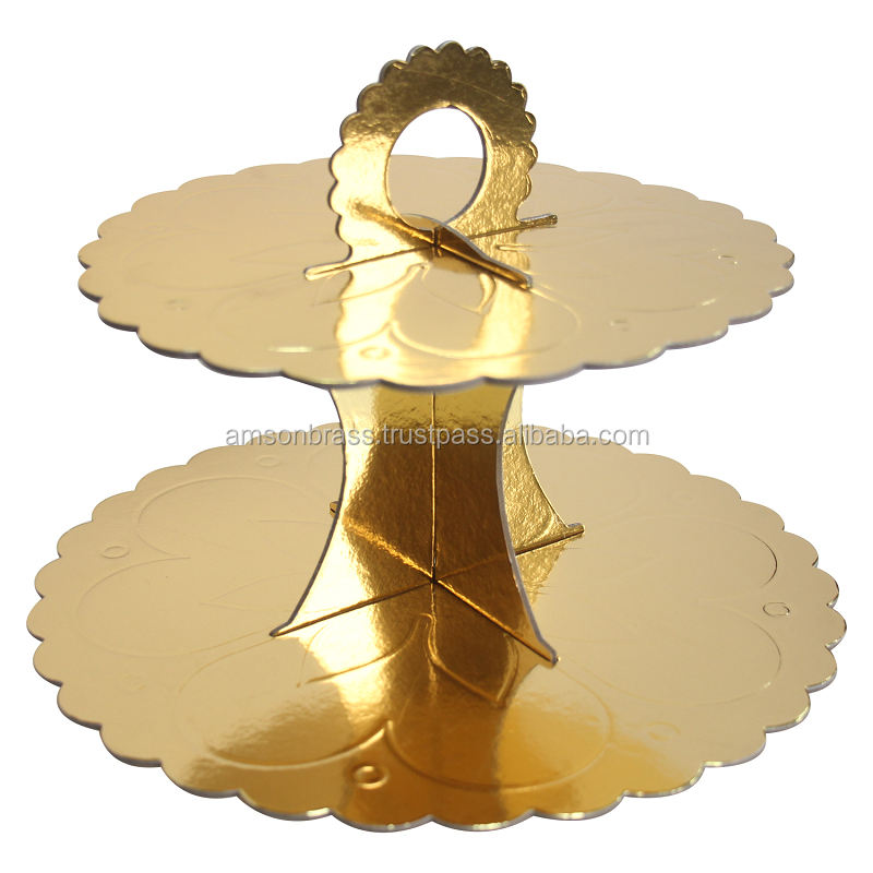 แท่นวางเค้กสำเร็จรูปสีทองขาตั้งเค้กแต่งงานผู้ผลิตคัพเค้กแท่นโชว์ตัดขอบ2ชั้น