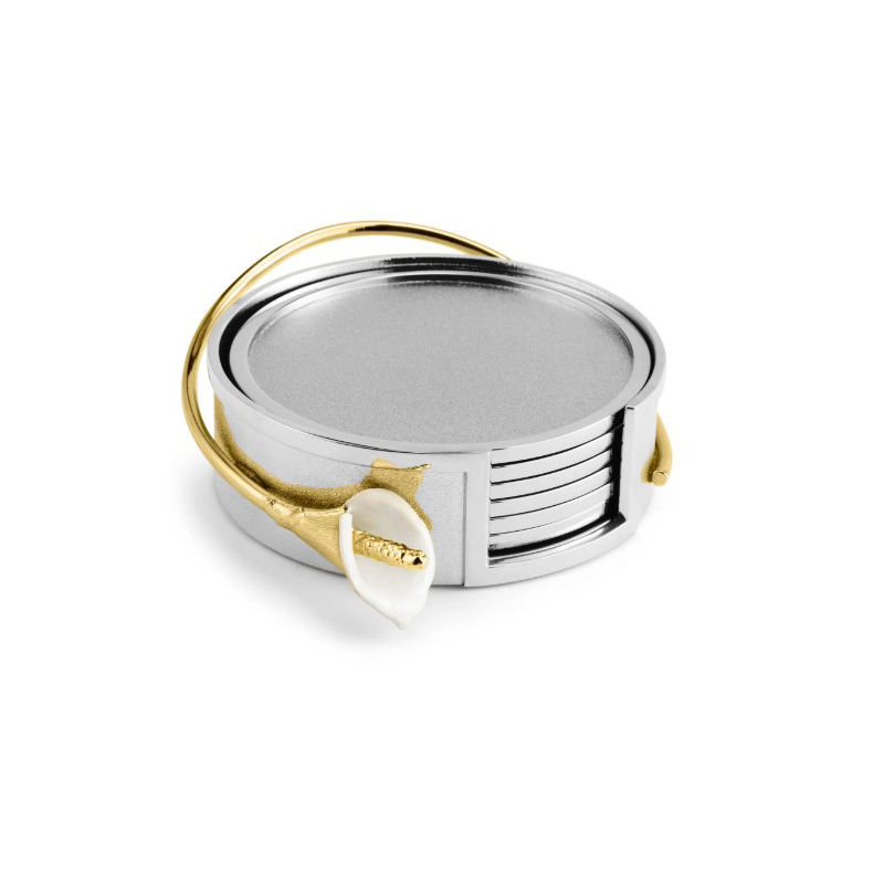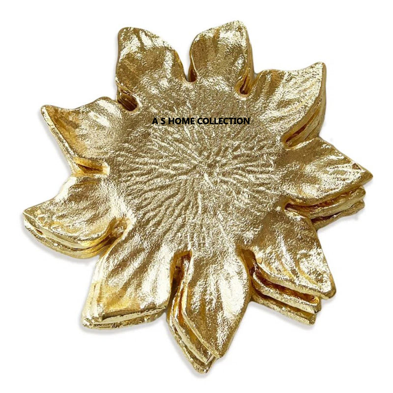ชุดที่รองแก้วโลหะสำหรับตกแต่งรูปดอกไม้สีทองหรูหราสไตล์บ้านและร้านอาหาร